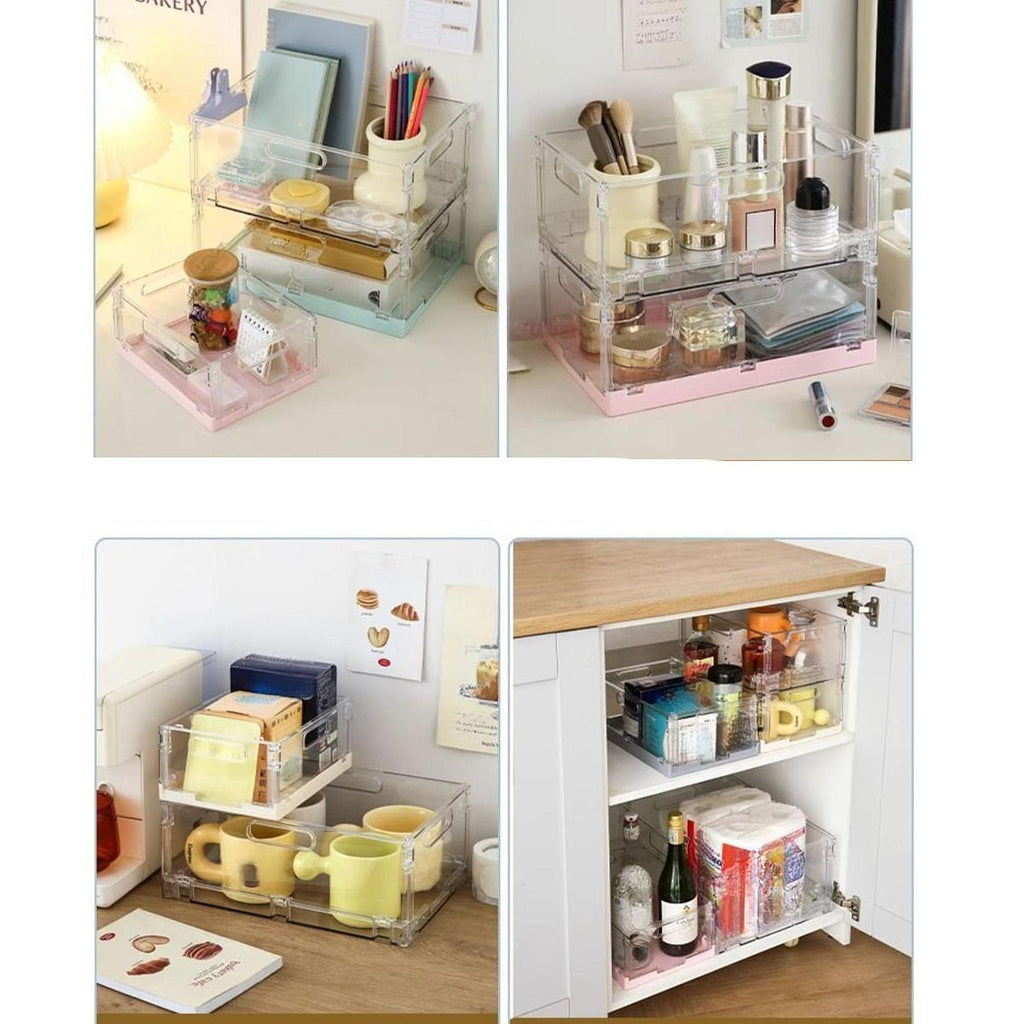 【Space Saving Stackable Feature】: Stackable Storage Organiser Box is designed to be freely stacked, this storage box offers stable stacking capabilities to help you save valuable desktop space while keeping everything organized