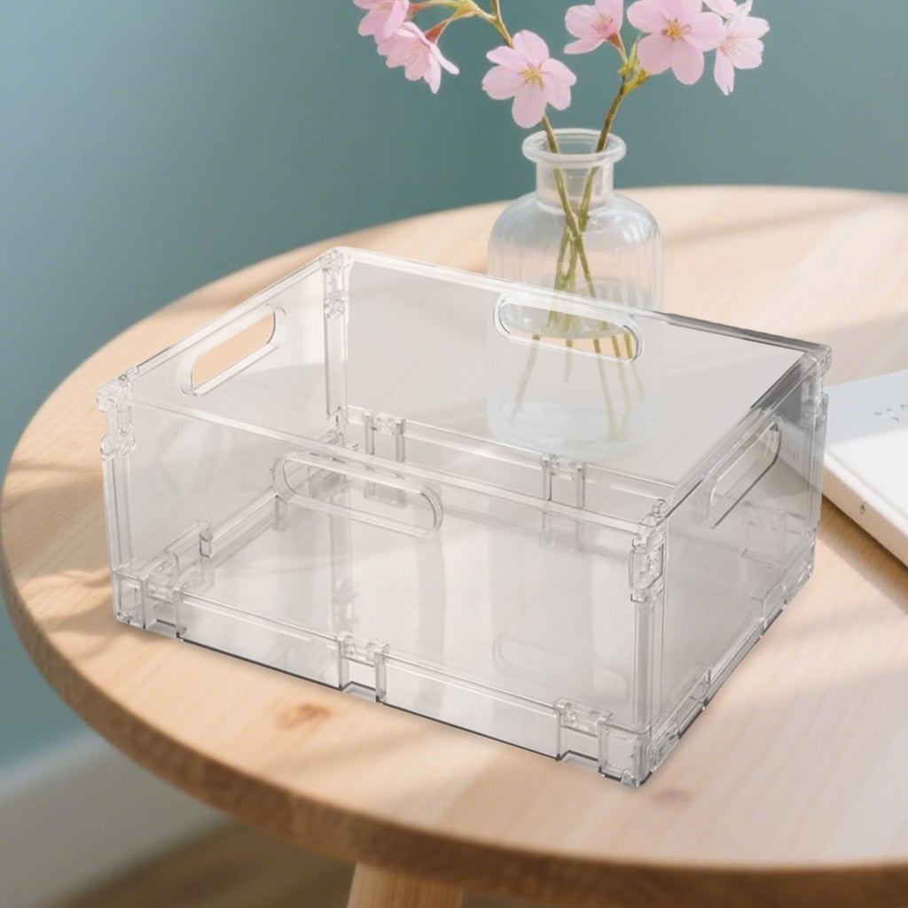 【Stylish and Transparent Design】: This desktop storage box with handles is not only practical but also a visual delight with its clear, transparent design that allows for easy organization and a tidy appearance