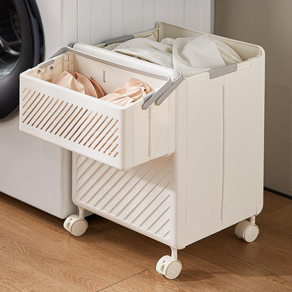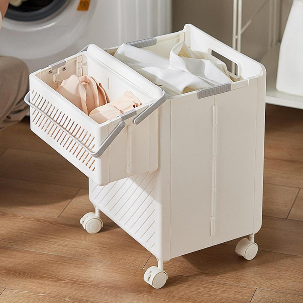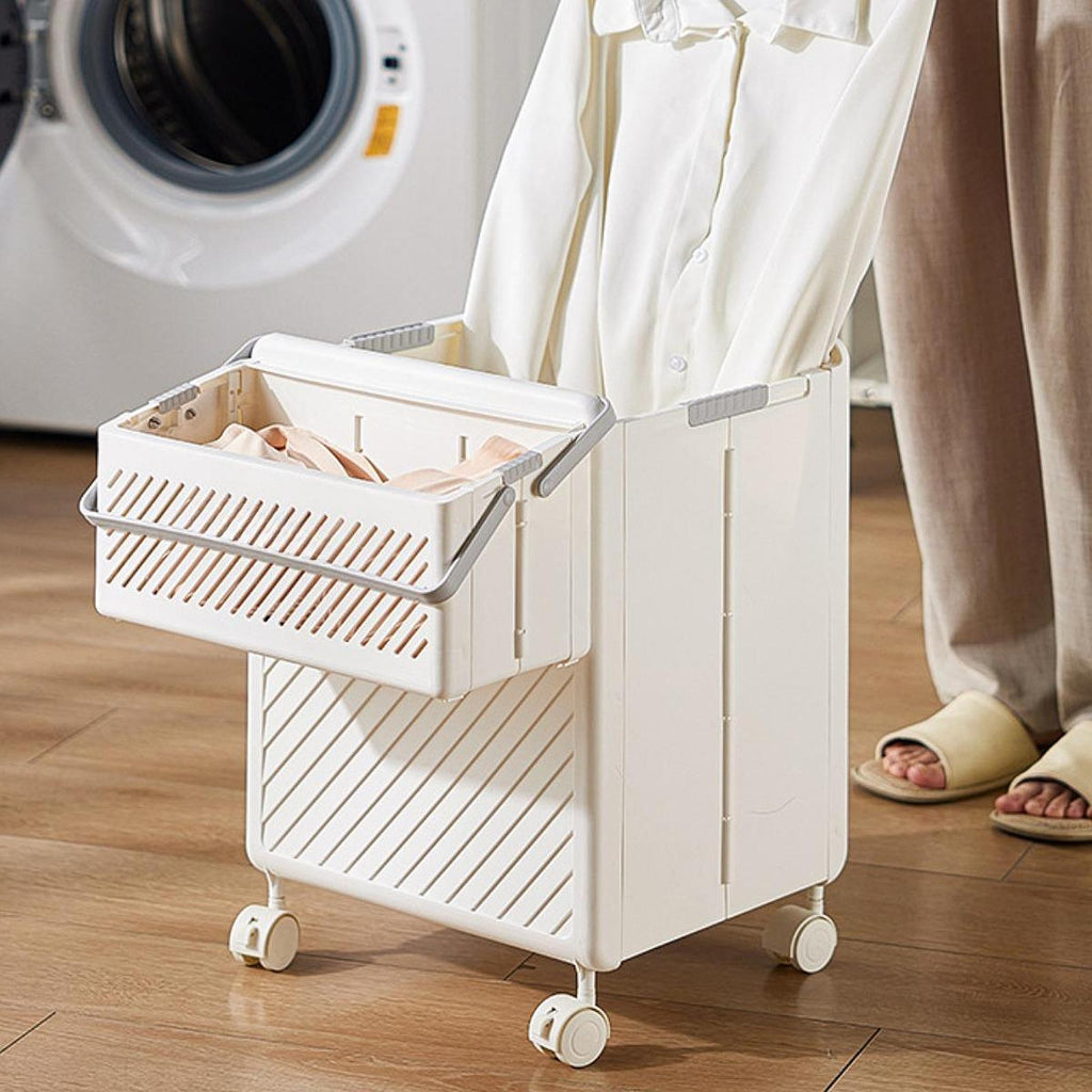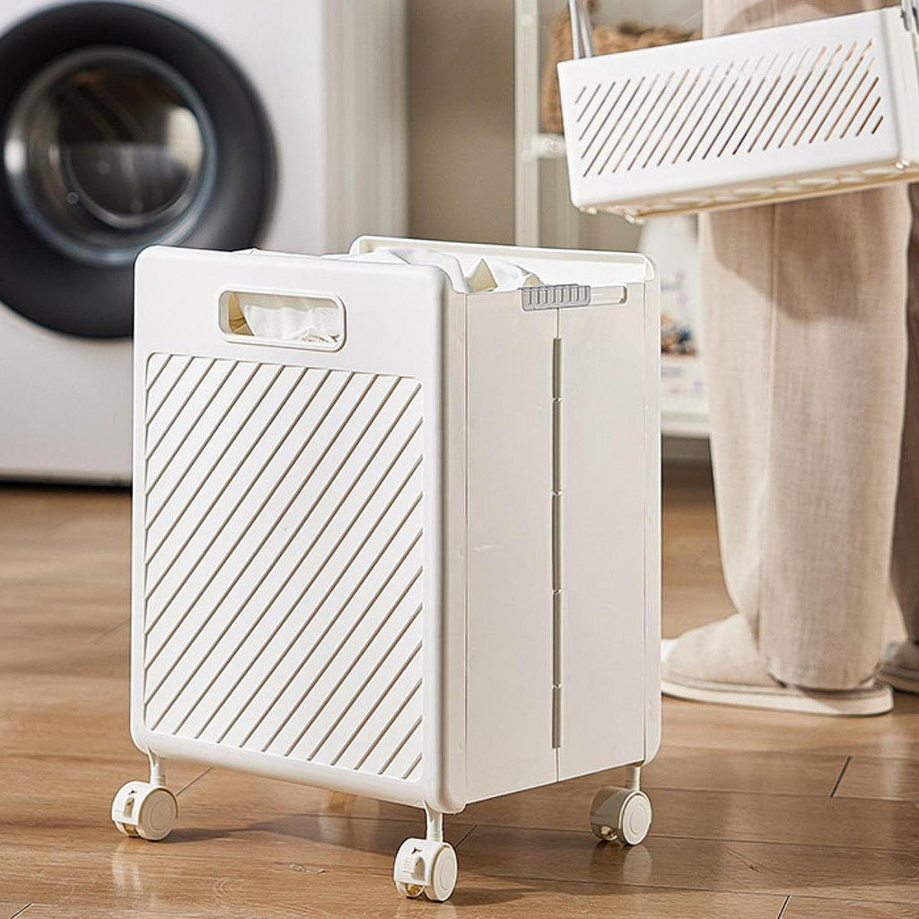 Maxbell Foldable Laundry Basket with Wheels Storage Organizer Container for Bathroom White