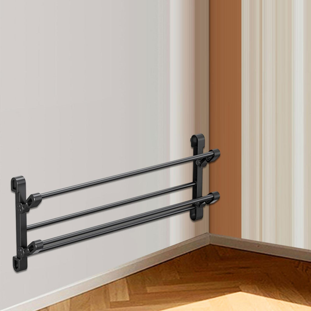 【Wide Applications】: The shoe rack towel hanger is great for behind the doors, bathrooms, bedrooms, entryways, RV, etc., keeping your footwear neatly stored while saving space. The simple and modern design enhances the cleanliness and aesthetics of the space