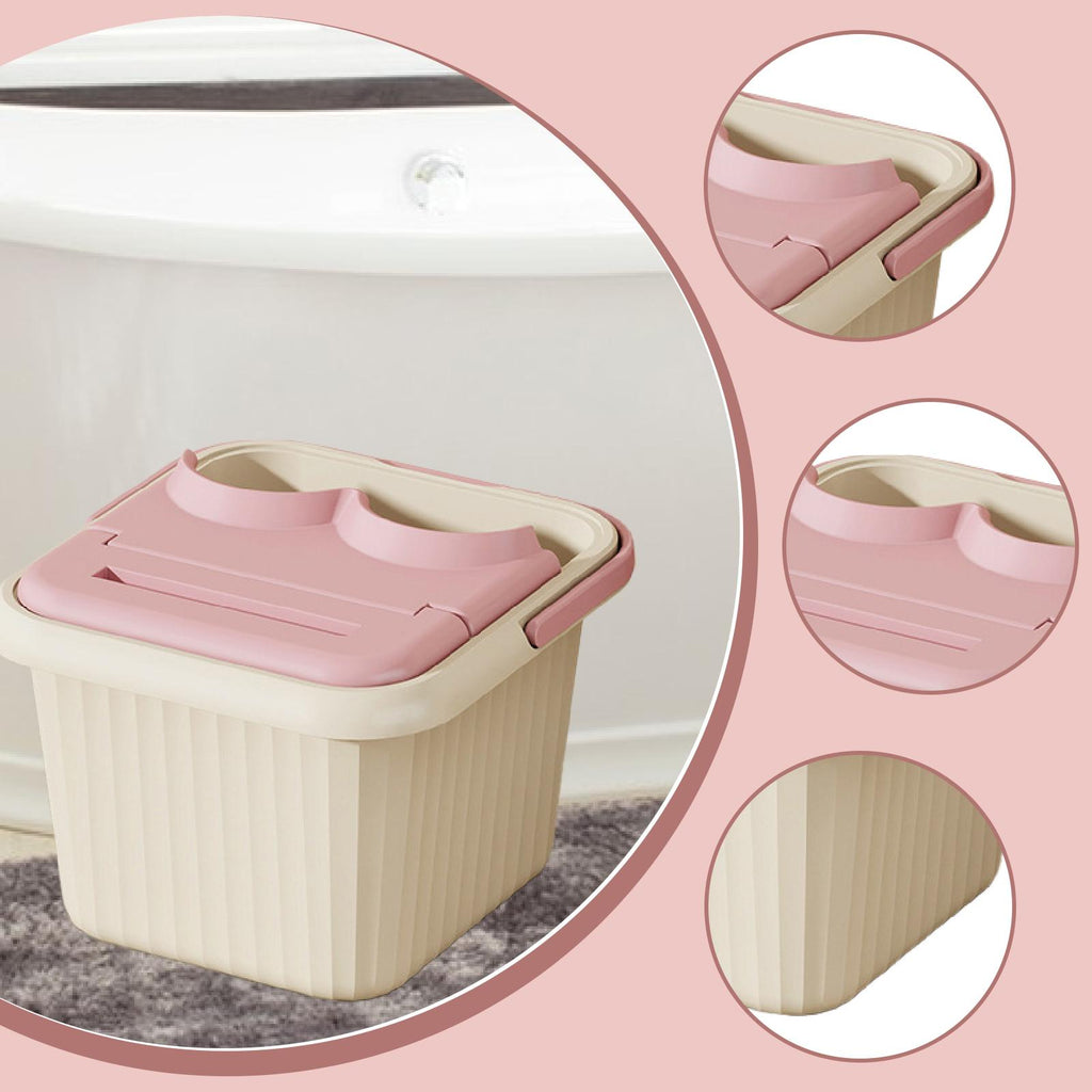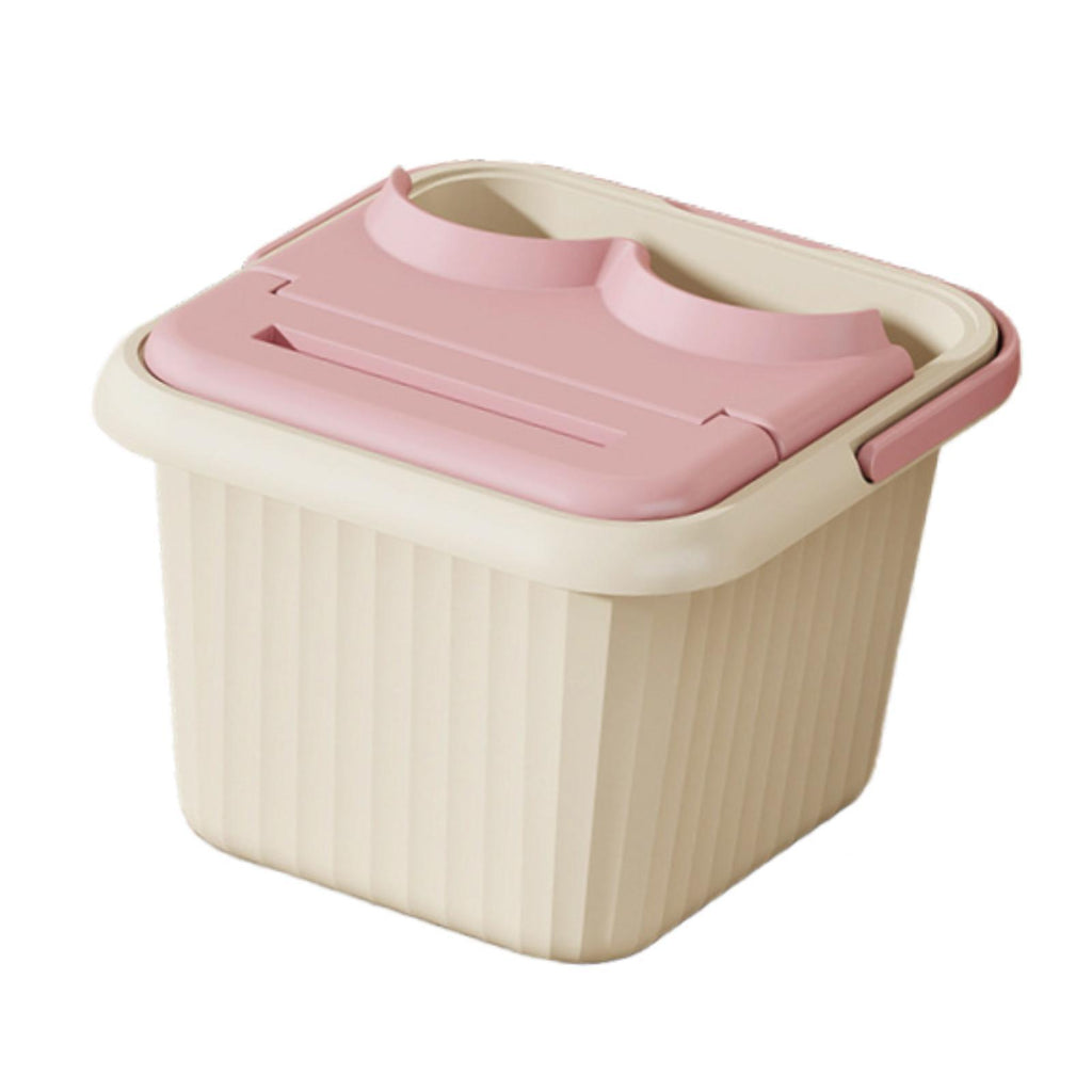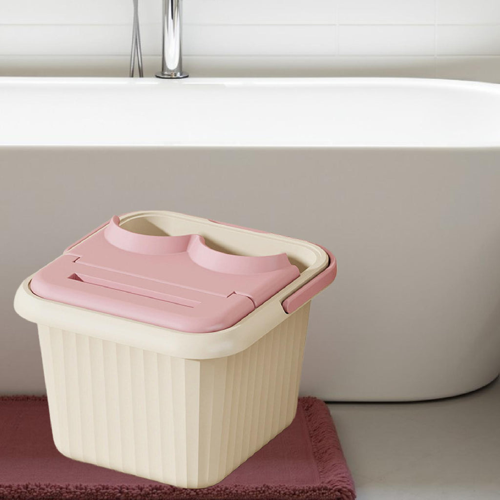 Foot Bath Basin with Handle Portable Lightweight Versatile with Massage Dots pink with lid