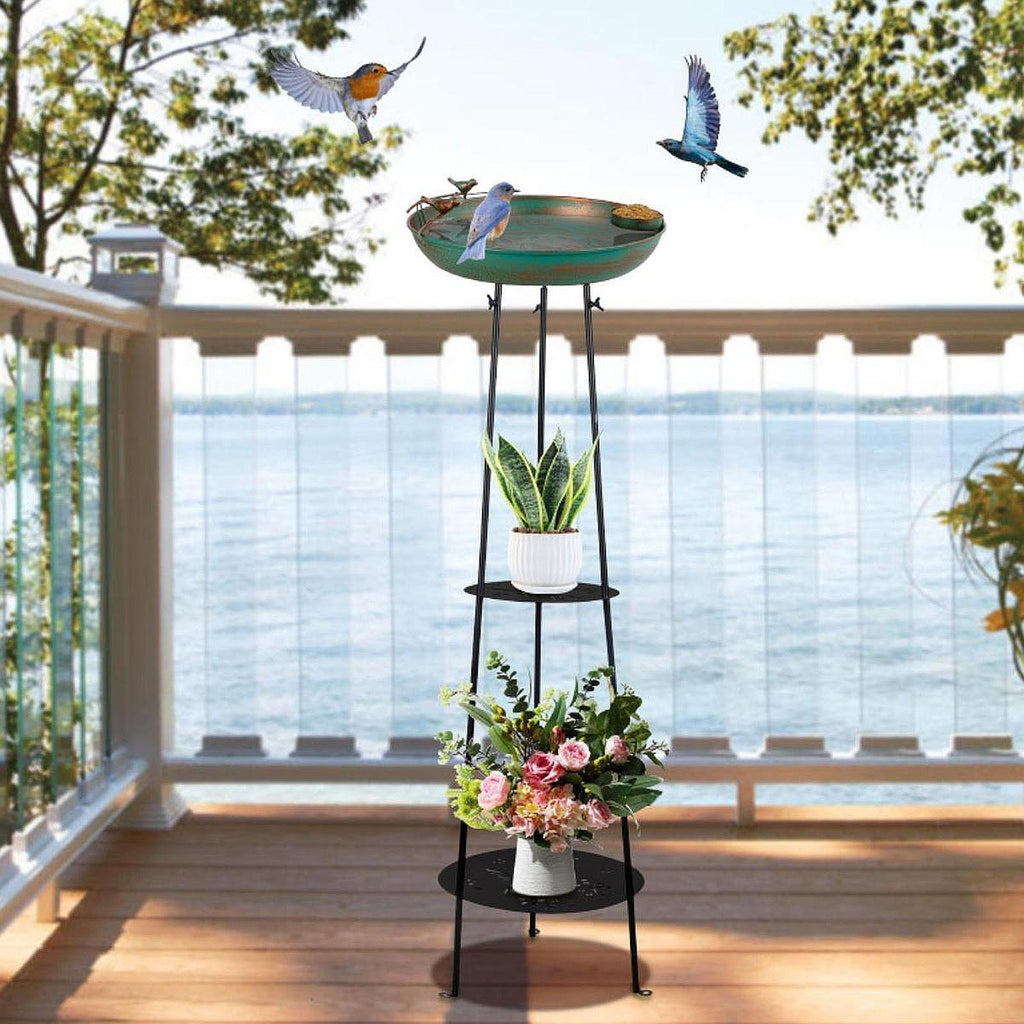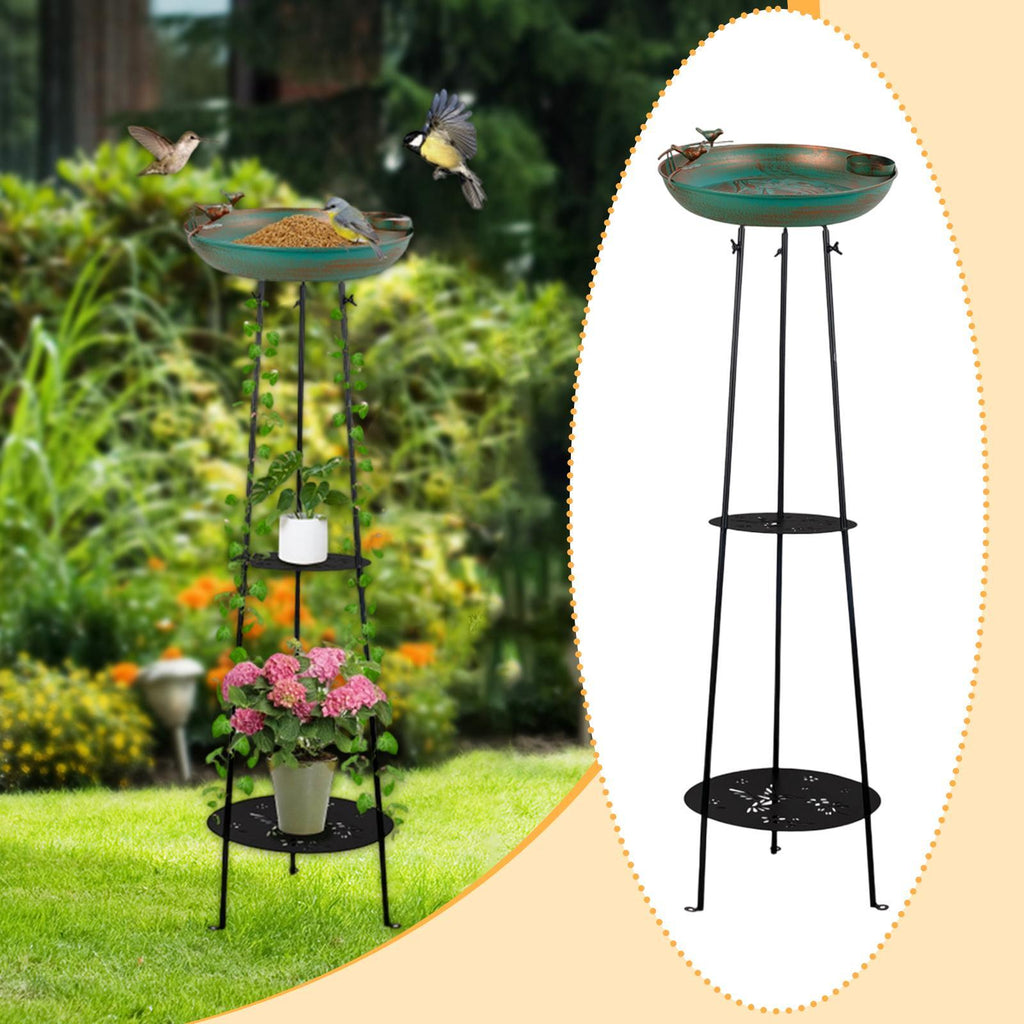- 【Multipurpose Design】Garden Tripod Stand with Bird Bath & Feeder, Metal Trellis Plant Support for Climbing Flowers