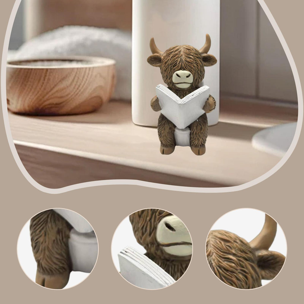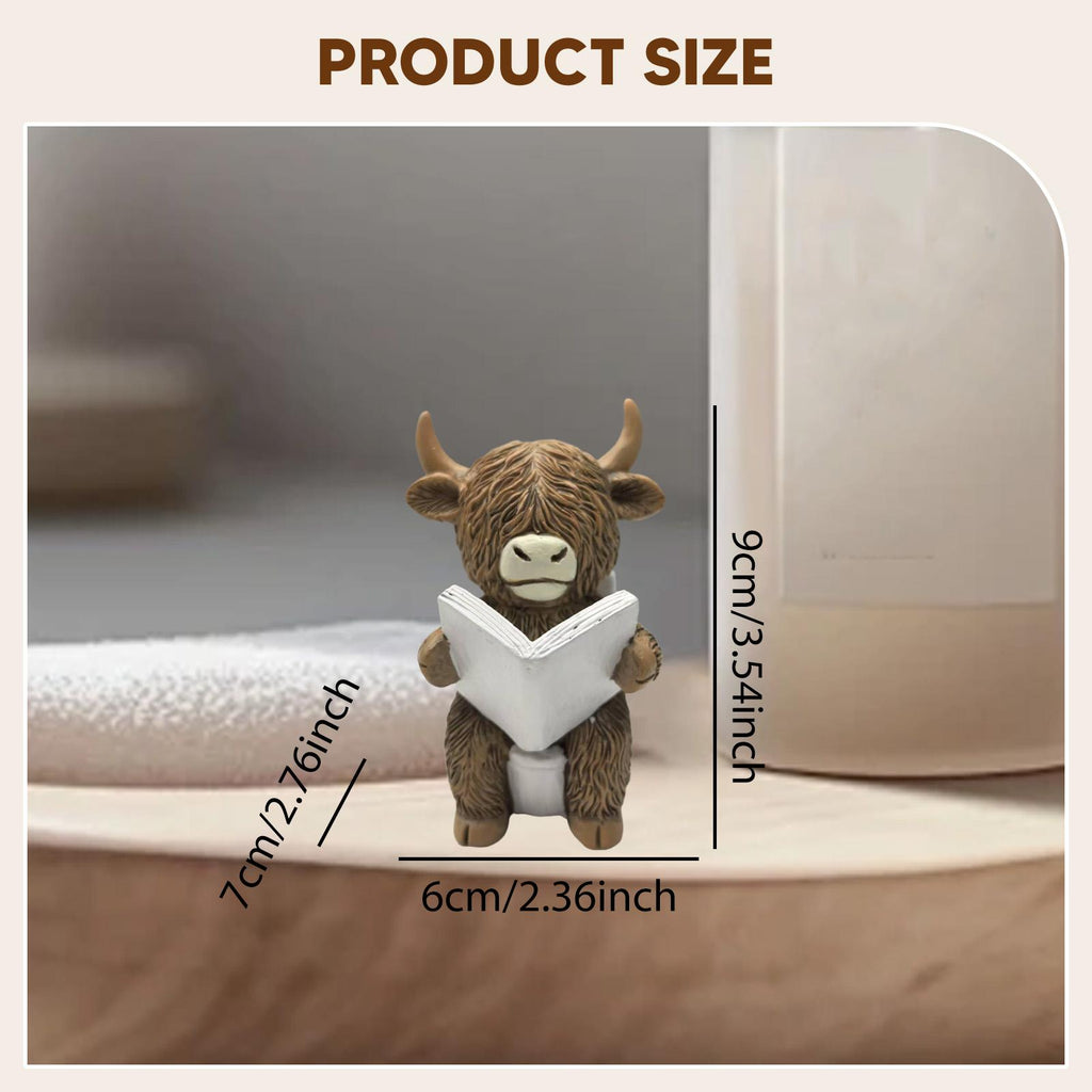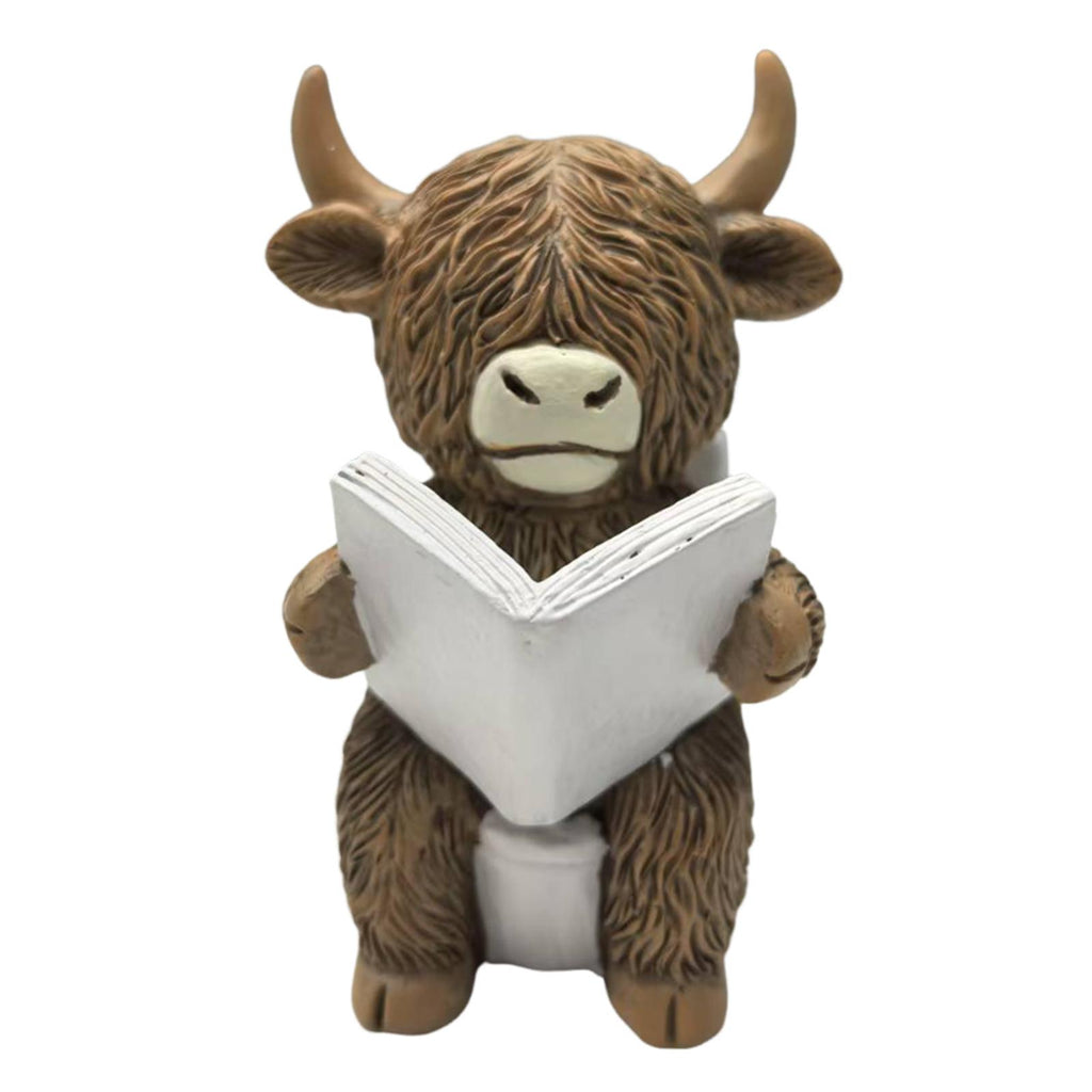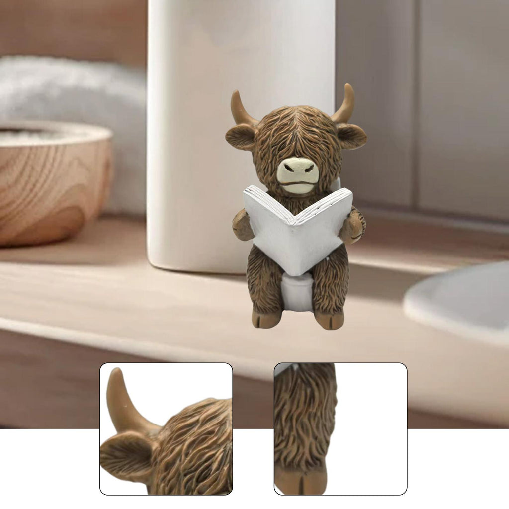 Maxbell Highland Cow Bathroom Figurine Desktop Ornament for Bedroom Living Room Desk Reading on Toilet