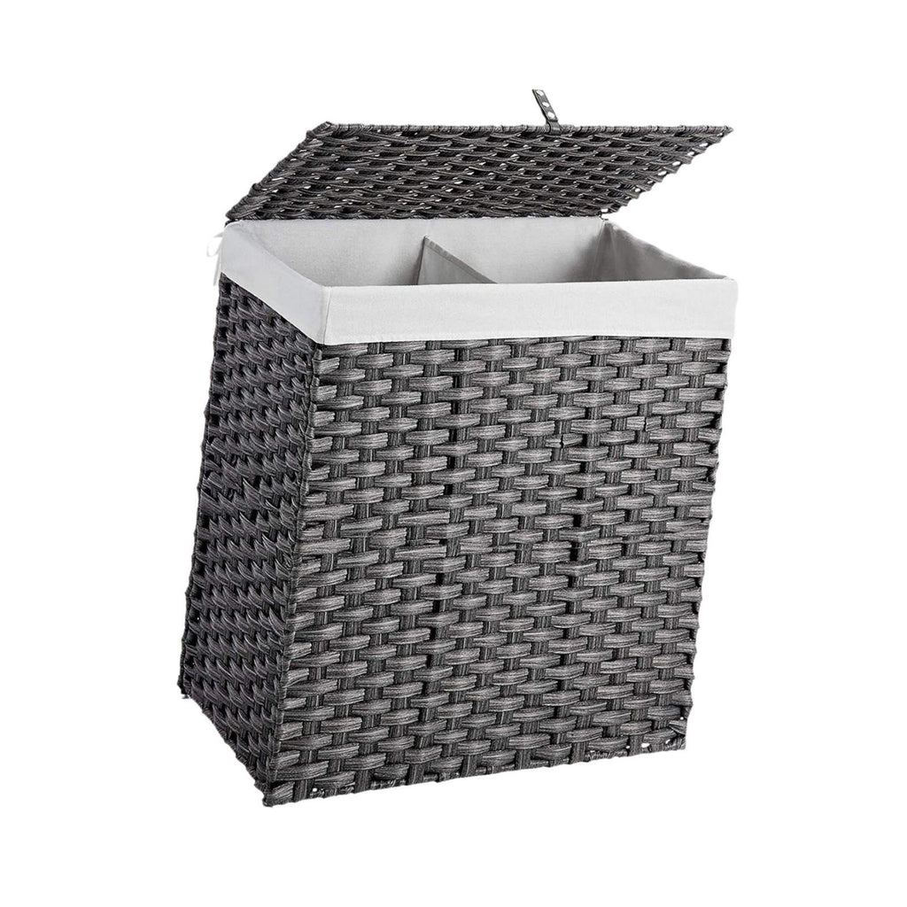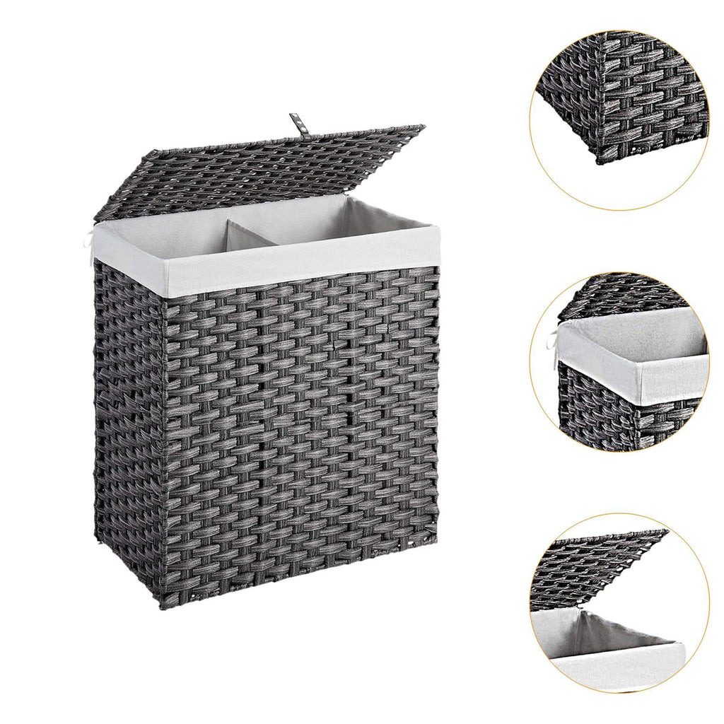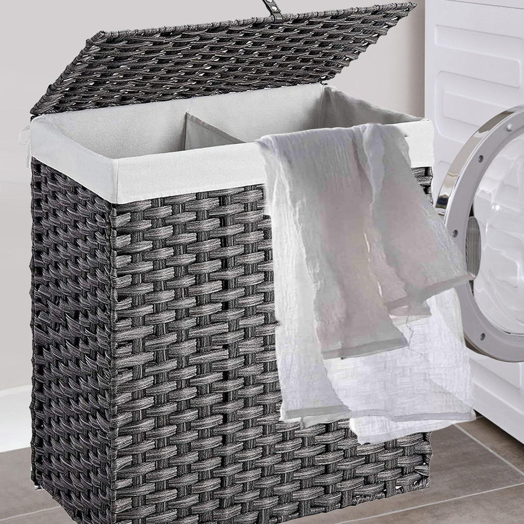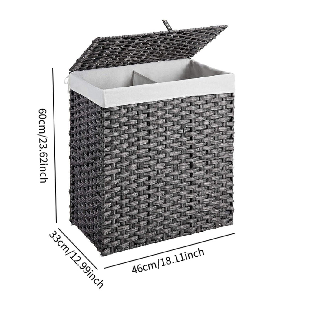 Maxbell Large Laundry Basket 2 Dividers Laundry Hamper for Living Room Dorm Bathroom Gray