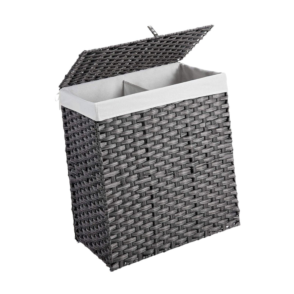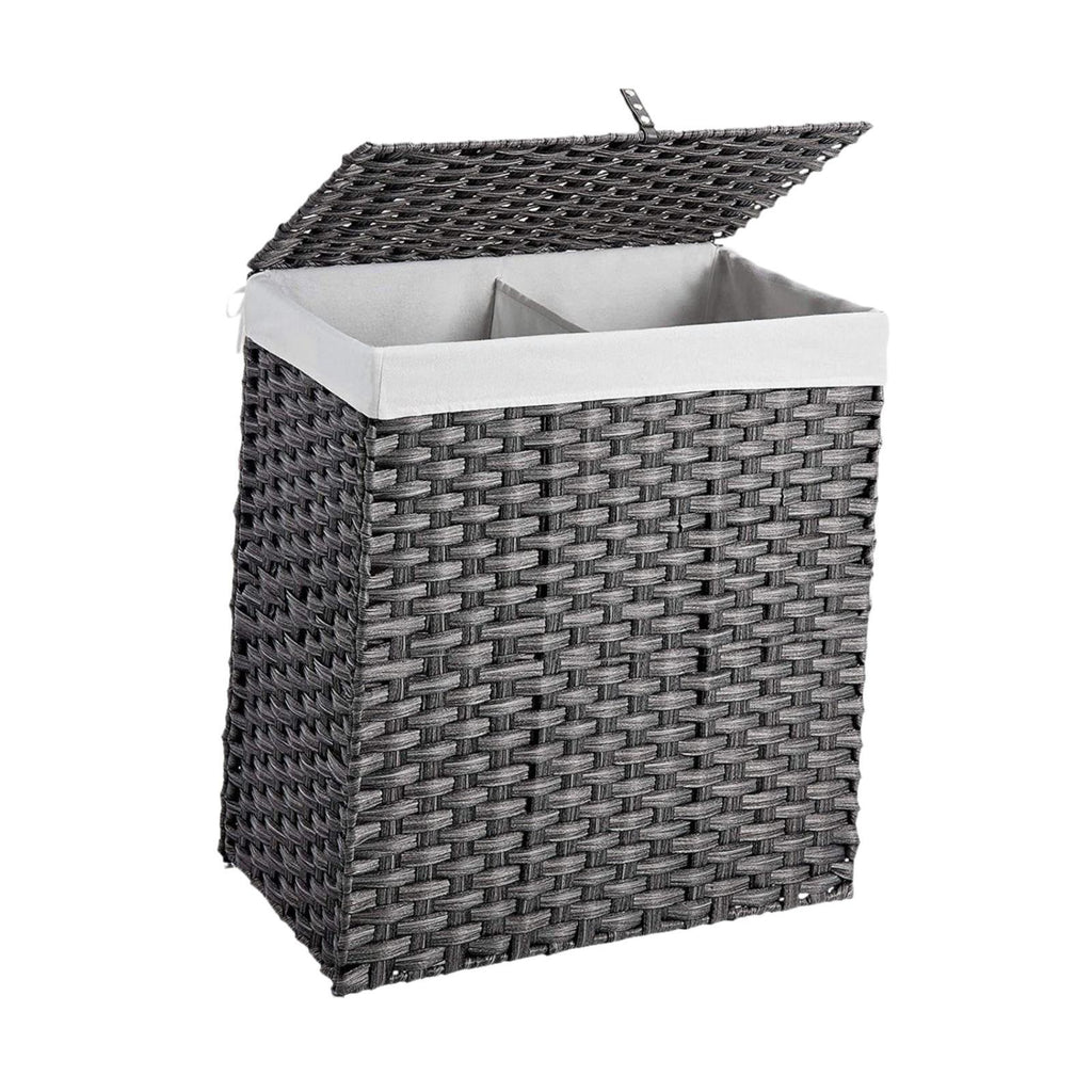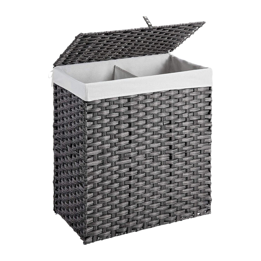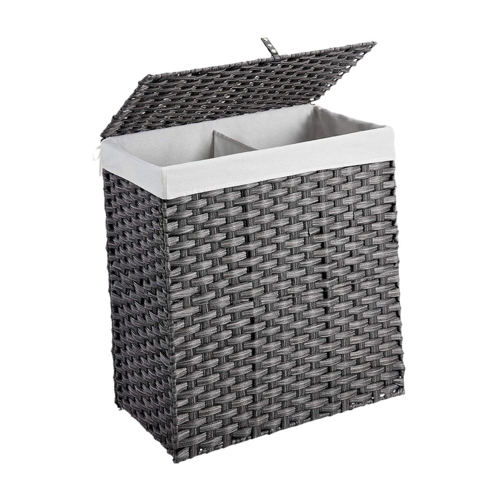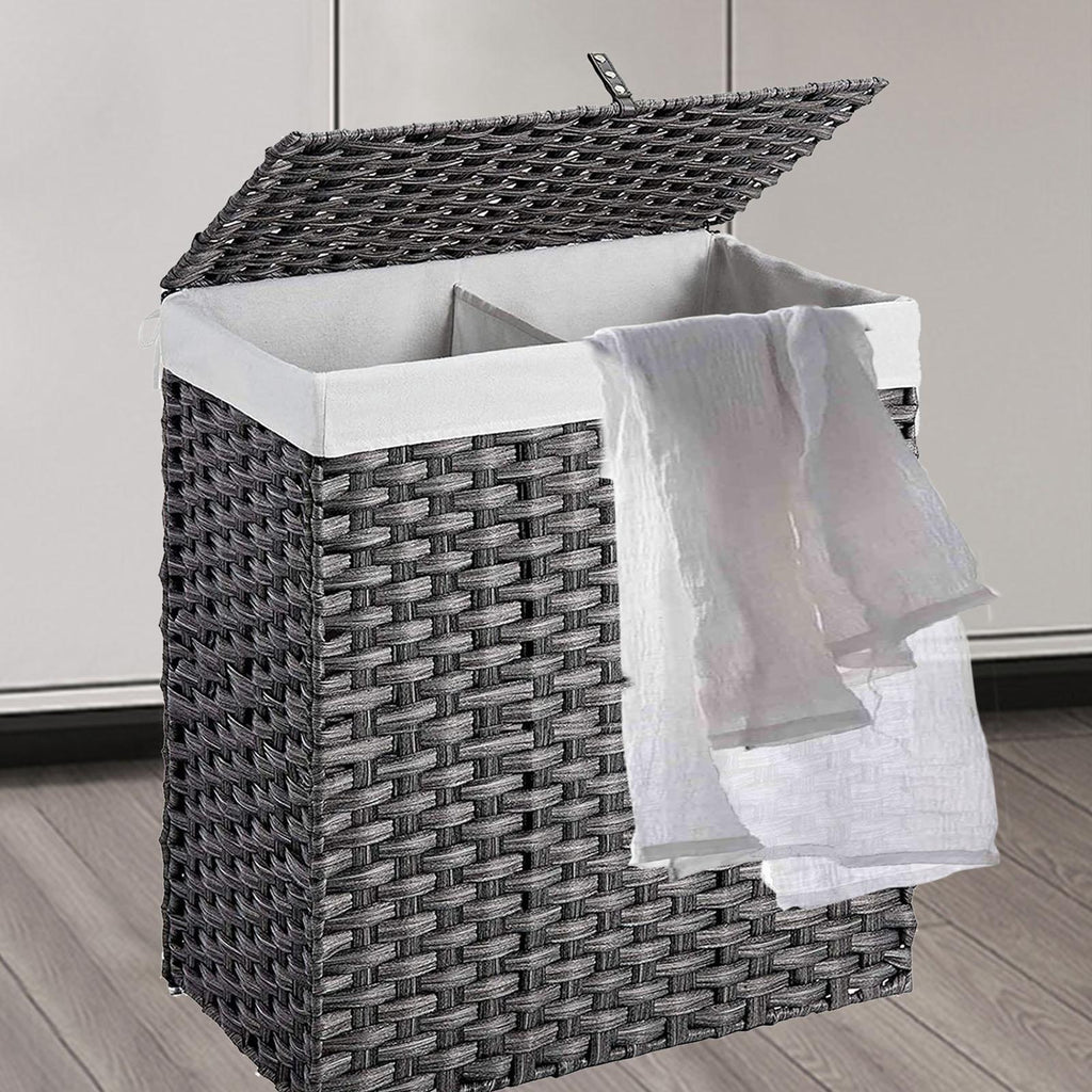 Maxbell Large Laundry Basket 2 Dividers Laundry Hamper for Living Room Dorm Bathroom Gray