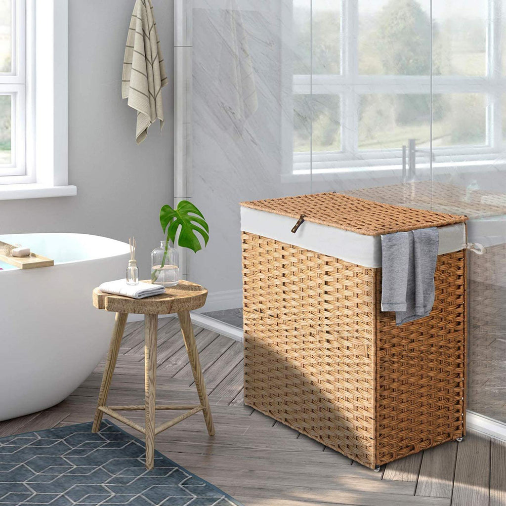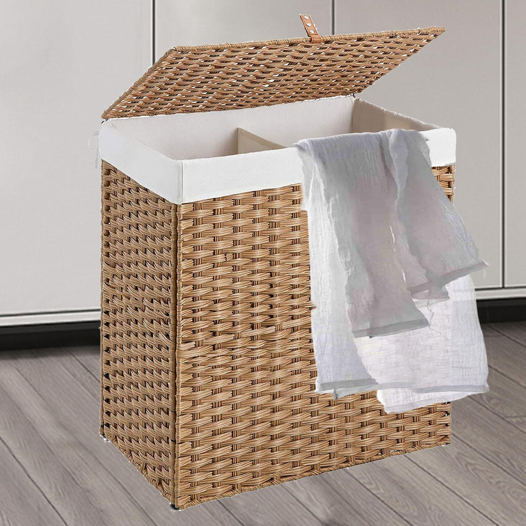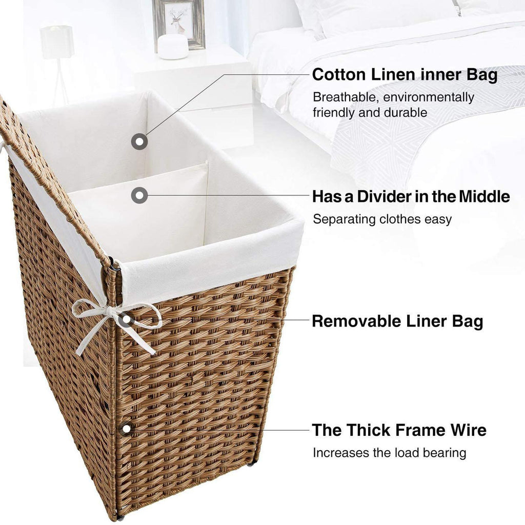 【Freestanding Structure】: Tall Laundry Basket with 2 Section organized and decreases clutter around your house with a decorative, attractive design. Great for dirty clothes hamper toy storage bin, gift basket, nursery hamper & Closet organizer