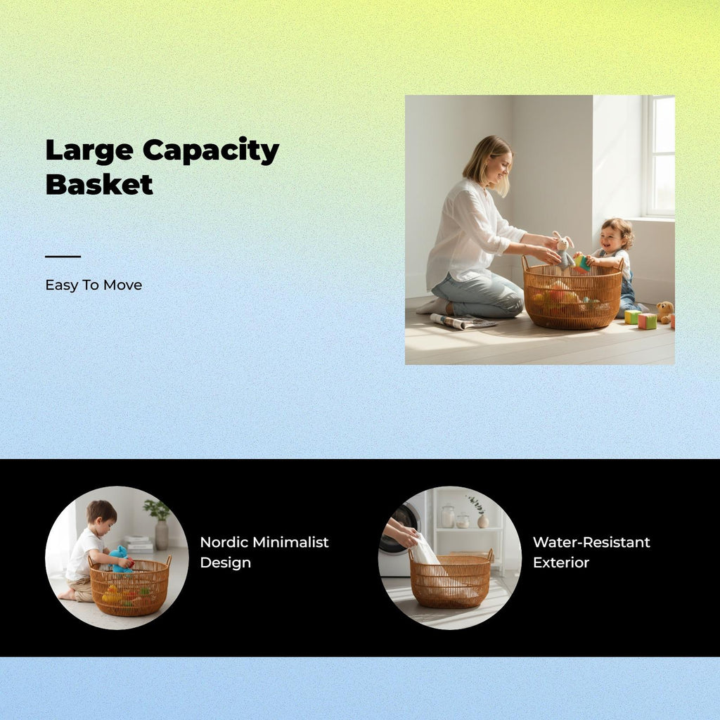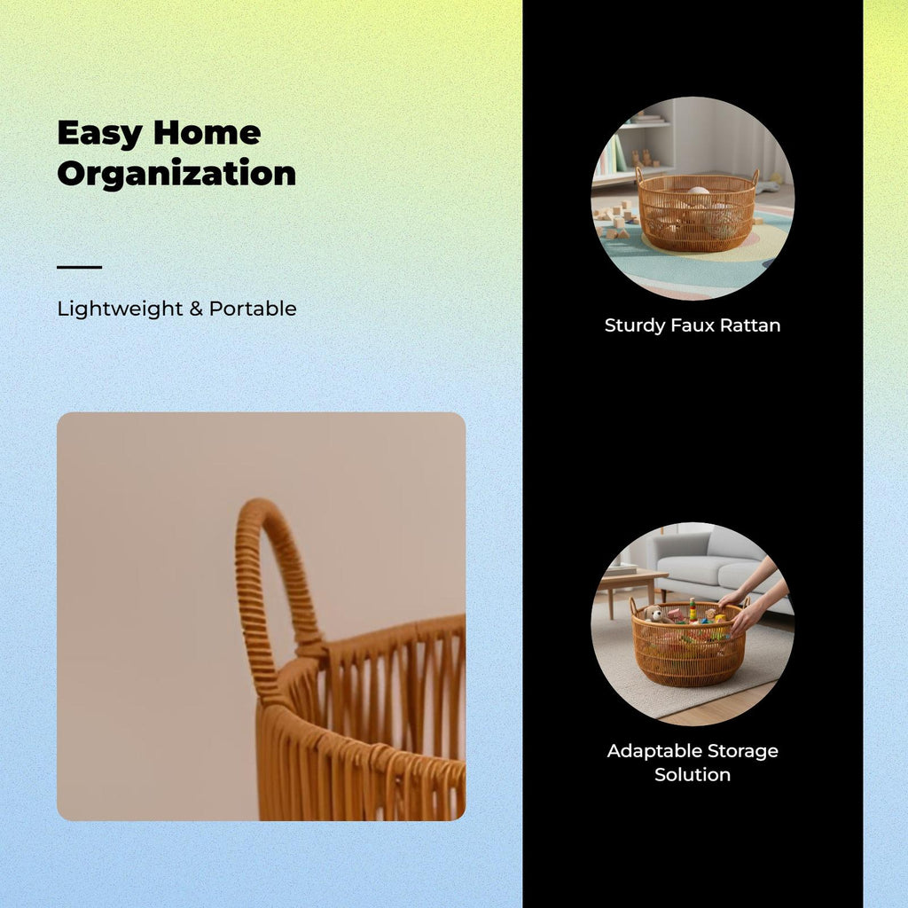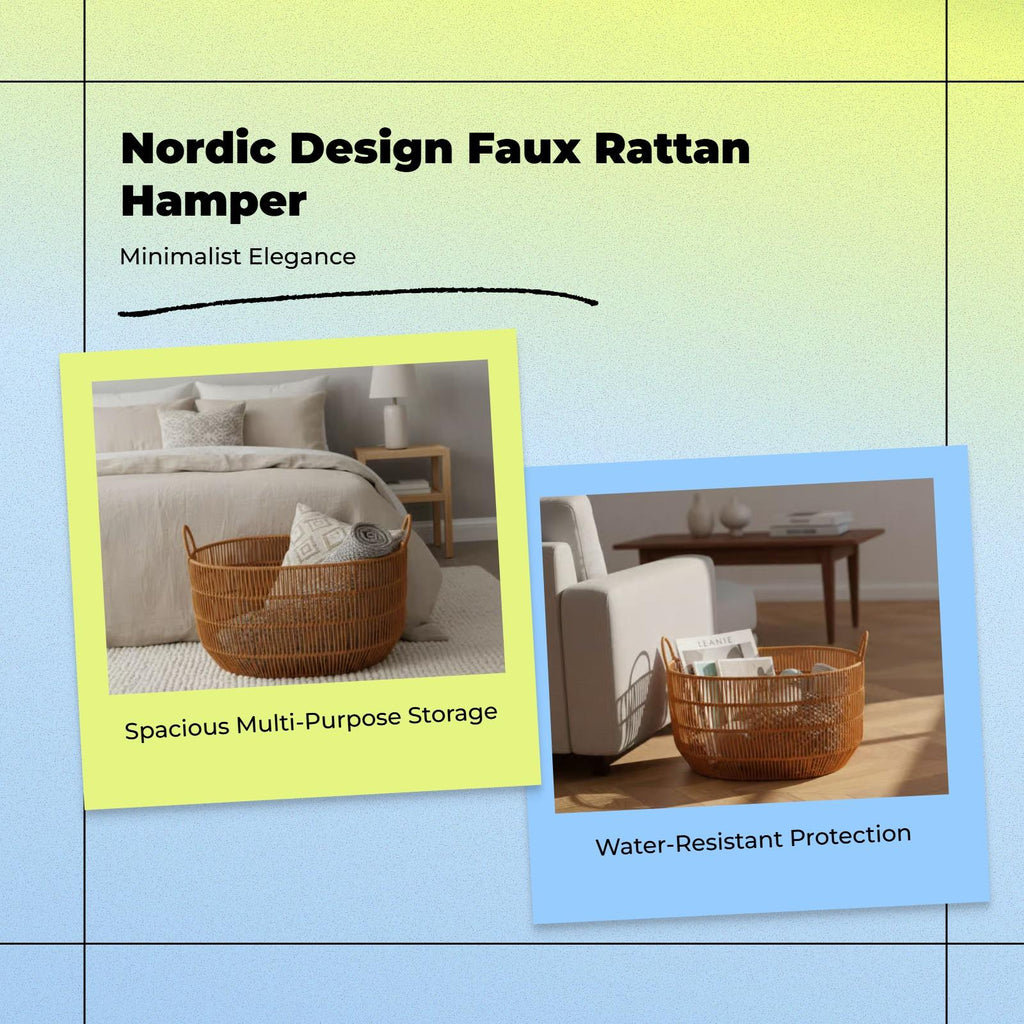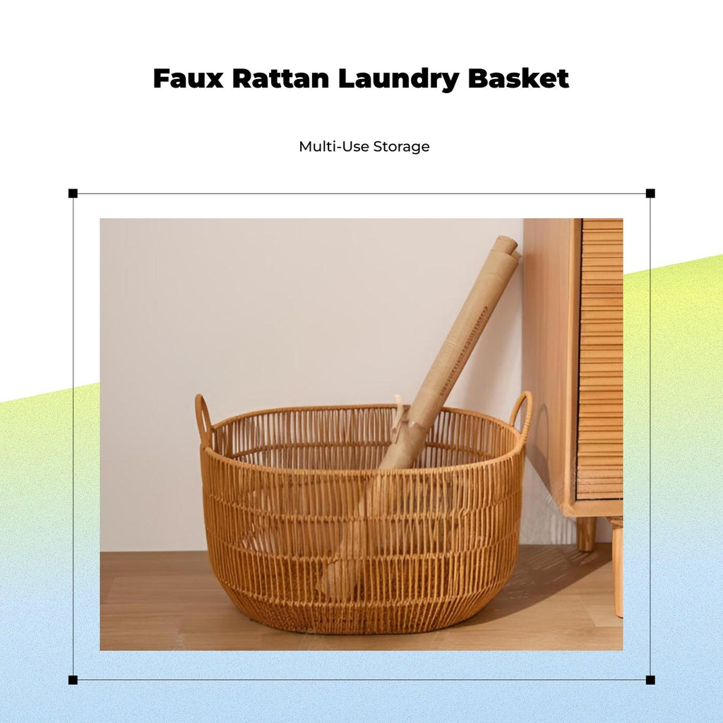 【Adaptable Laundry Hamper for Organized Storage】This waterproof wicker laundry hamper offers strong and sturdy storage for dirty clothes, toys, and assorted items, making it perfect for bedrooms, bathrooms, and laundry rooms.【Space-Saving and Foldable Design】The freestanding, foldable framework allows for easy storage and transport, helping you save space and keep your home tidy.【Easy to Carry with Reinforced Handles】Equipped with sturdy handles, this laundry basket is easy to carry and move, perfect for common use in various rooms or while traveling.【High-Quality and Practical】Made from high-quality imitation rattan, this hamper is both practical and stylish, blending seamlessly with modern home décor.【Large Capacity for Multiple Uses】The spacious design accommodates clothes, toys, and other household items, making it suitable for family, dorm, or hotel use.Specification: