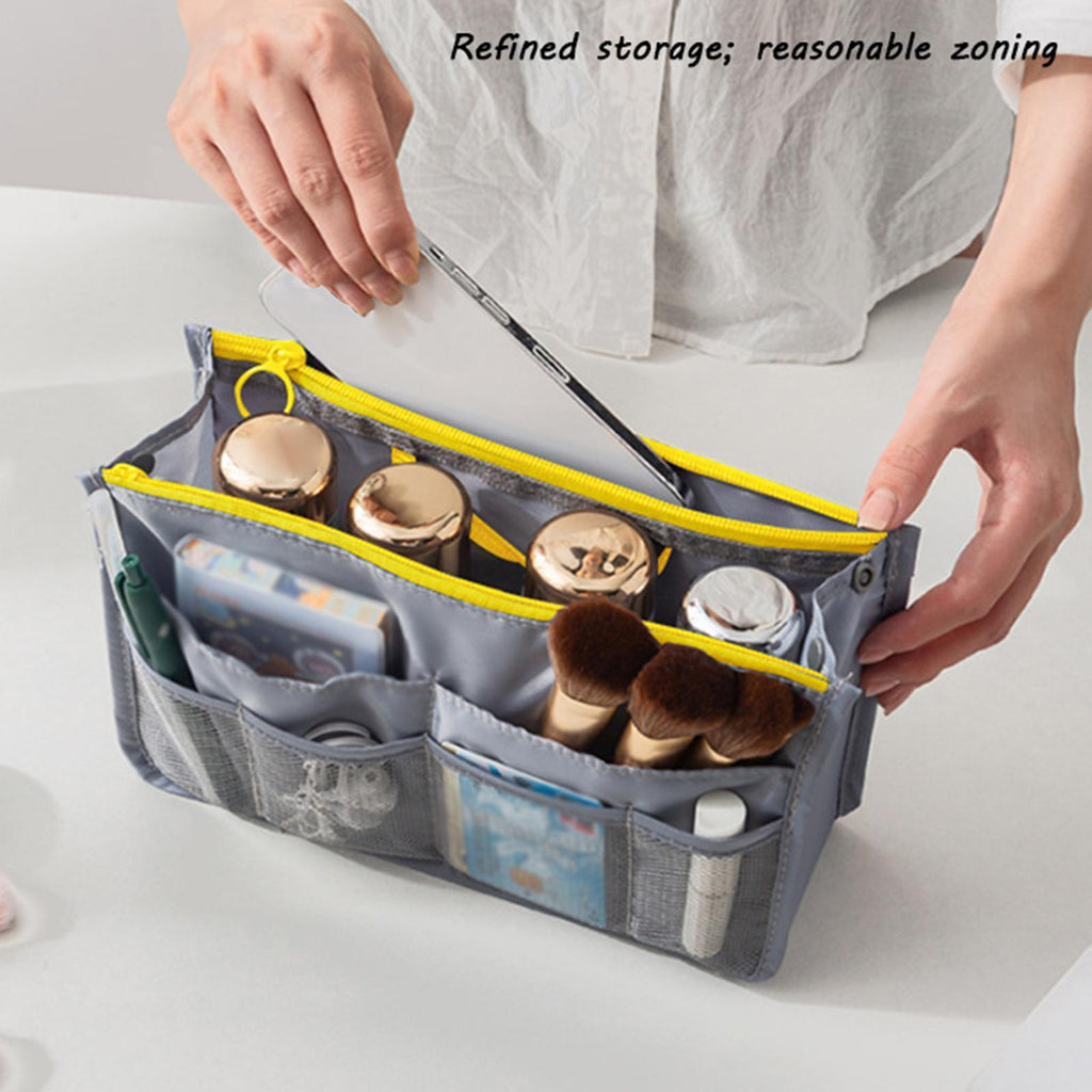 【Dimension】: 11.42inchx3.35inchx6.89inch, Our Travel Organizer Bag offers a large storage space that can accommodate all your makeup and toiletries, making your travel more convenient.