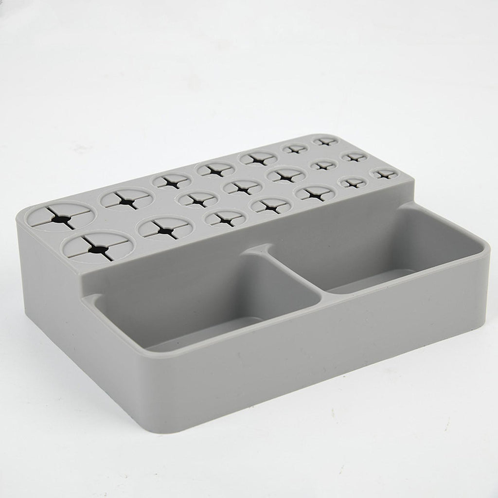 Makeup Storage Box: Makeup brush holder with 21 compartments(2 big, 19 small), this makeup brush holder is compact yet spacious enough to hold various types of brushes including eyeshadow brushes, eyebrow pencil brushes and more
