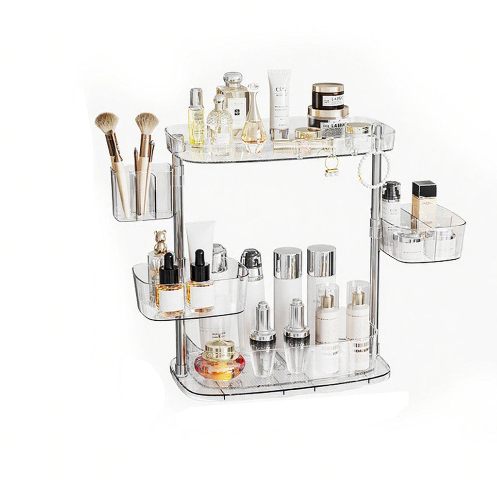 - 【Space Saving Shelf】: Keep your countertop neat and organized with this multi layer rotating storage box, designed to hold cosmetics, lipsticks, and skincare products efficiently