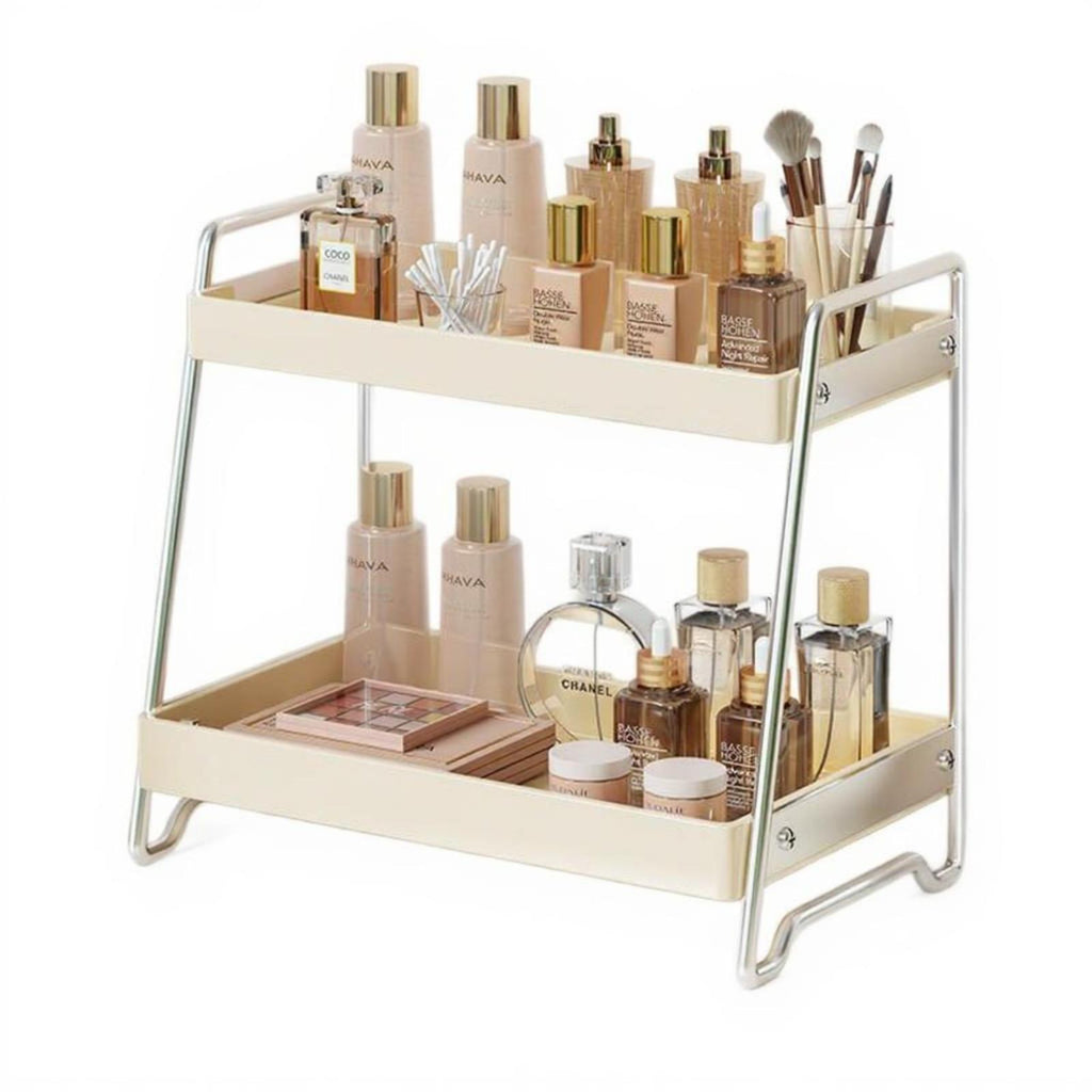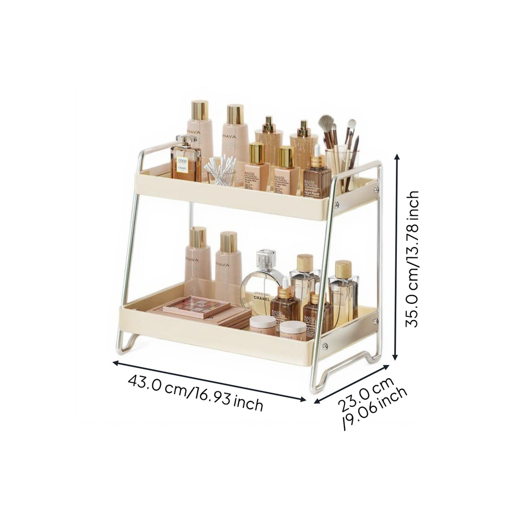 Makeup Organizer, Bathroom Countertop Storage Box, Vanity Skincare Organizer, Large Capacity Large 43x23x35cm Cream White