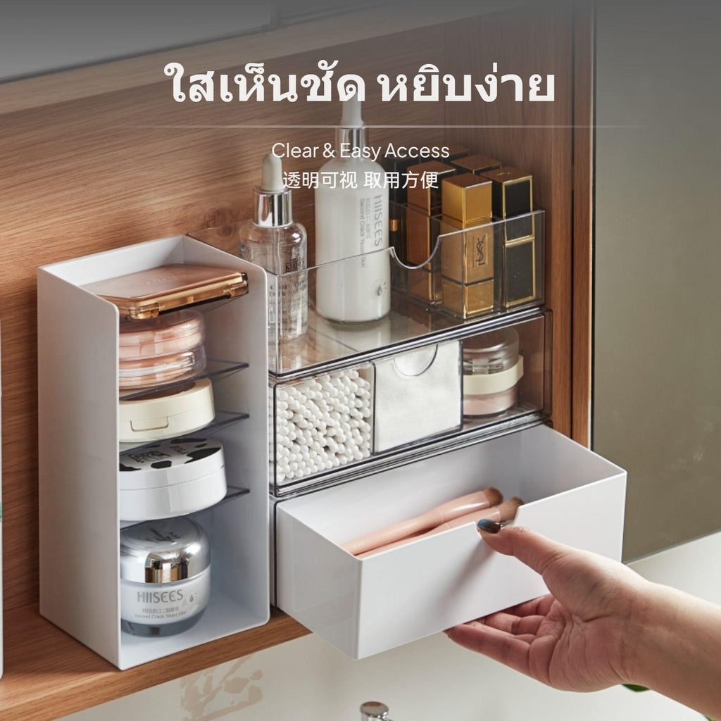 [Efficient Makeup Storage] Keep cosmetics, skincare, and lipsticks organized with this transparent organizer, perfect for bathrooms, dressing tables, and desktops.[Adaptable Functional Design] Multiple styles—open, divided, drawer, upright, and wall-mounted—suit various storage needs and adapt to mirror cabinets, tables, and bathrooms.[High-Quality Material] Made from premium PET/PS for a sturdy, environmentally-conscious, odorless product; see contents clearly with the transparent or semi-transparent design.[Customizable Combinations] Freely stack or combine organizers to fit your space and items, crafting a personalized storage system that reduces clutter.[Elegant, Multicolor choices] Modern minimalist styling complements different decor; available in clear, ivory, warm tan, soft yellow, rose, and smoky grey.Specification:
