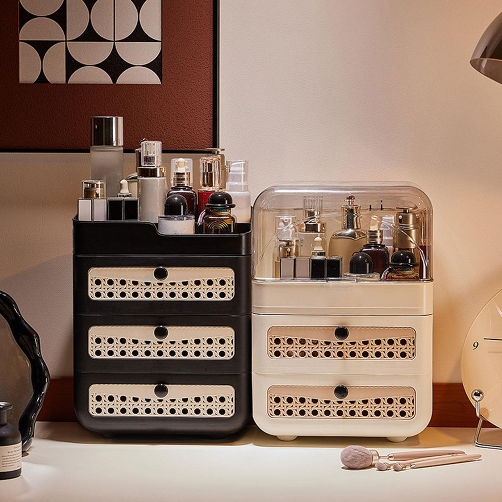 【Drawers】: The drawers of the Cosmetics Organizer not only enhance the aesthetic attract but also provide ample space for organizing lipsticks, skincare products, and other beauty essentials efficiently