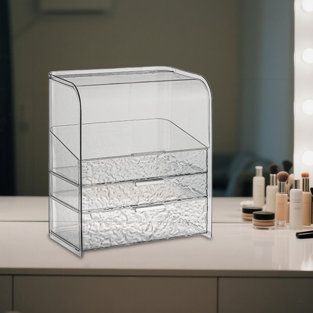 - 【Elegant Design】: This Makeup Organizer features a unique, transparent texture that beautifully, turning your everyday makeup storage into a chic decorative piece for your vanity, dresser, or bathroom counter