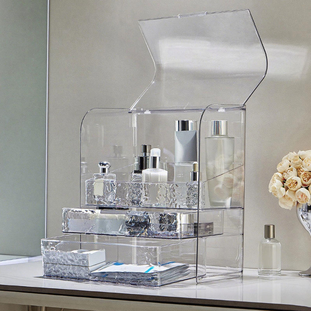 - 【Protective Cover】: Keep your cherished cosmetics and skincare products clean, pristine, and ready for use. The integrated lid provides nice protection from dust, water splashes, making it an ideal storage solution for any room, especially the bathroom