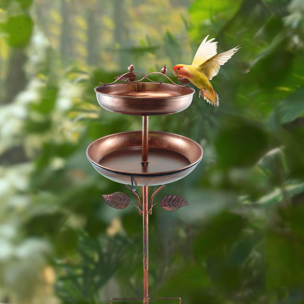 Maxbell Metal Bird Bath Double Layer Stand Freestanding Birdbath for Lawn Patio Yard Height 123cm
