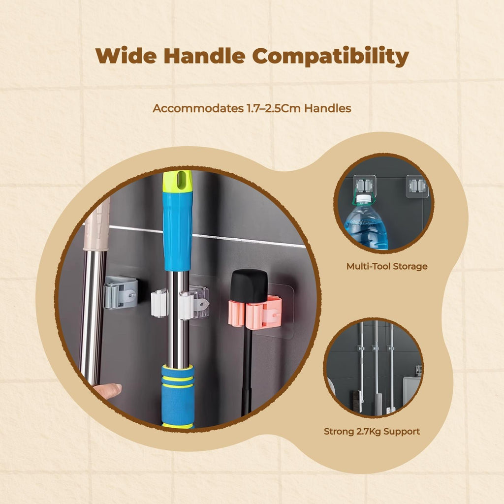 Mop Holder, Wall Mount, Non-Slip, Bathroom Organizer