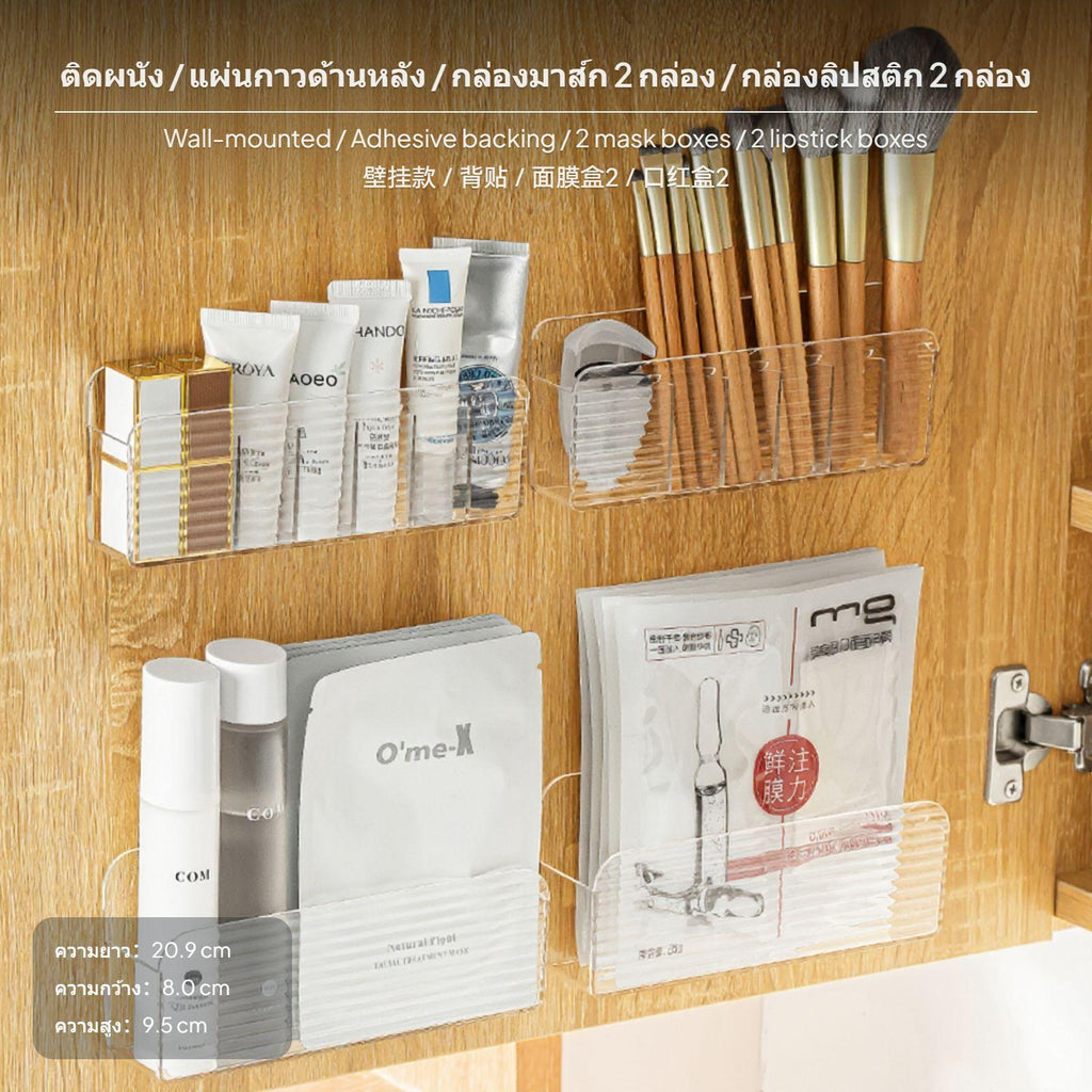 Multifunctional Transparent Storage Box, Face face covering Organizer, Wall-Mounted & Desktop, Bathroom Vanity Cabinet Fridge Cosmetic Holder Wall 2 Mask 2 Lip