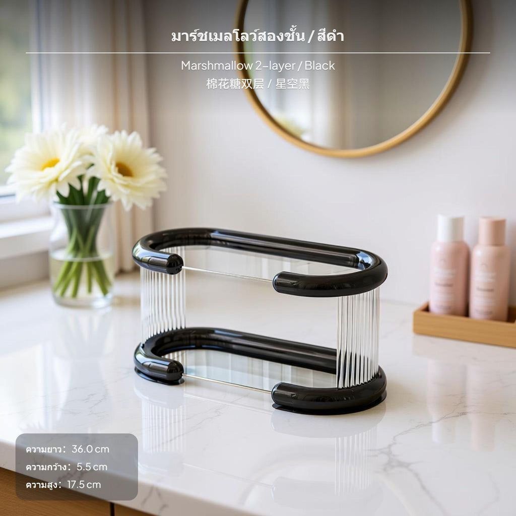 Multitier Cosmetic Organizer, Vanity Storage Rack, Acrylic Makeup Tray, Modern Minimalist for vanity table, Entryway and Bathroom Marshmallow 2L Black