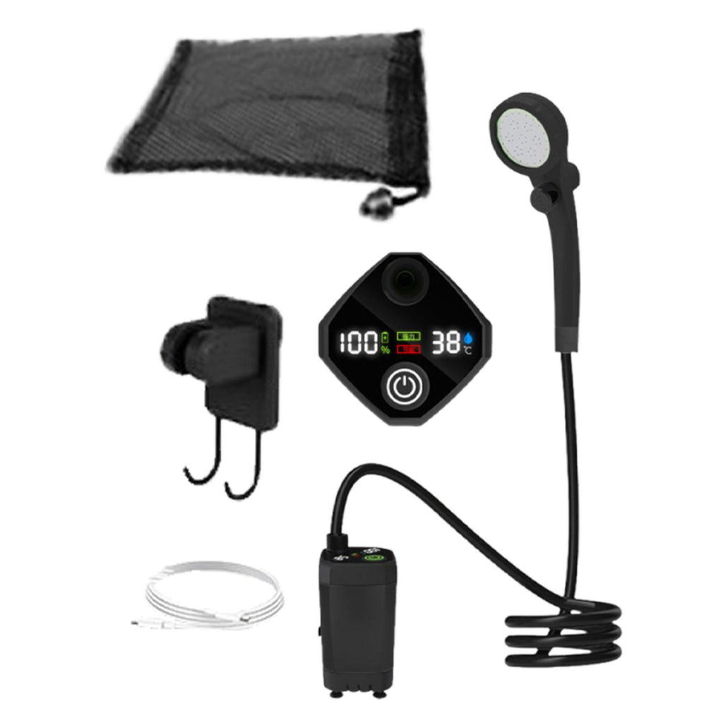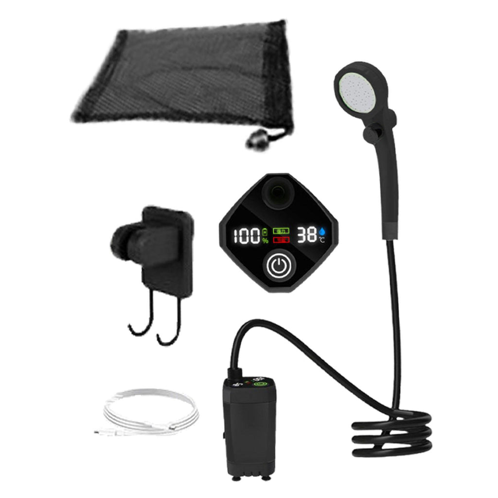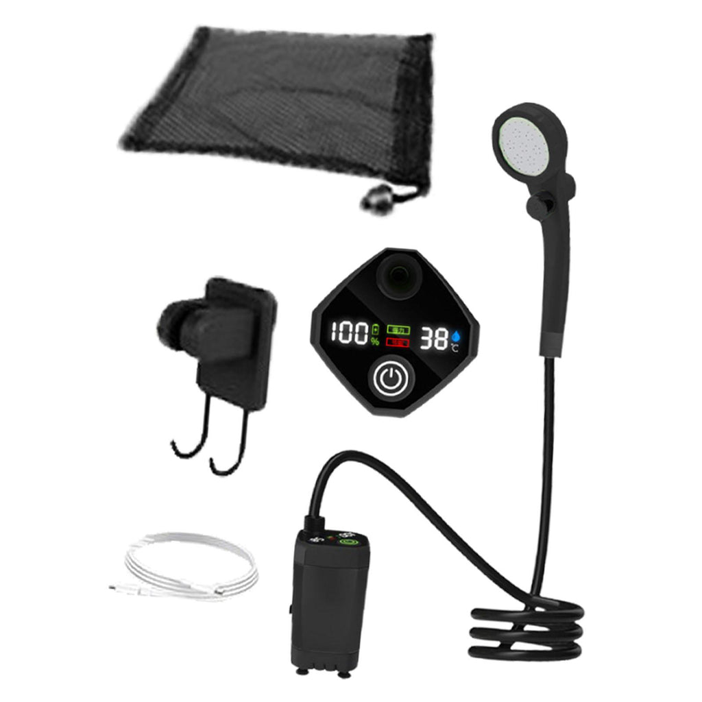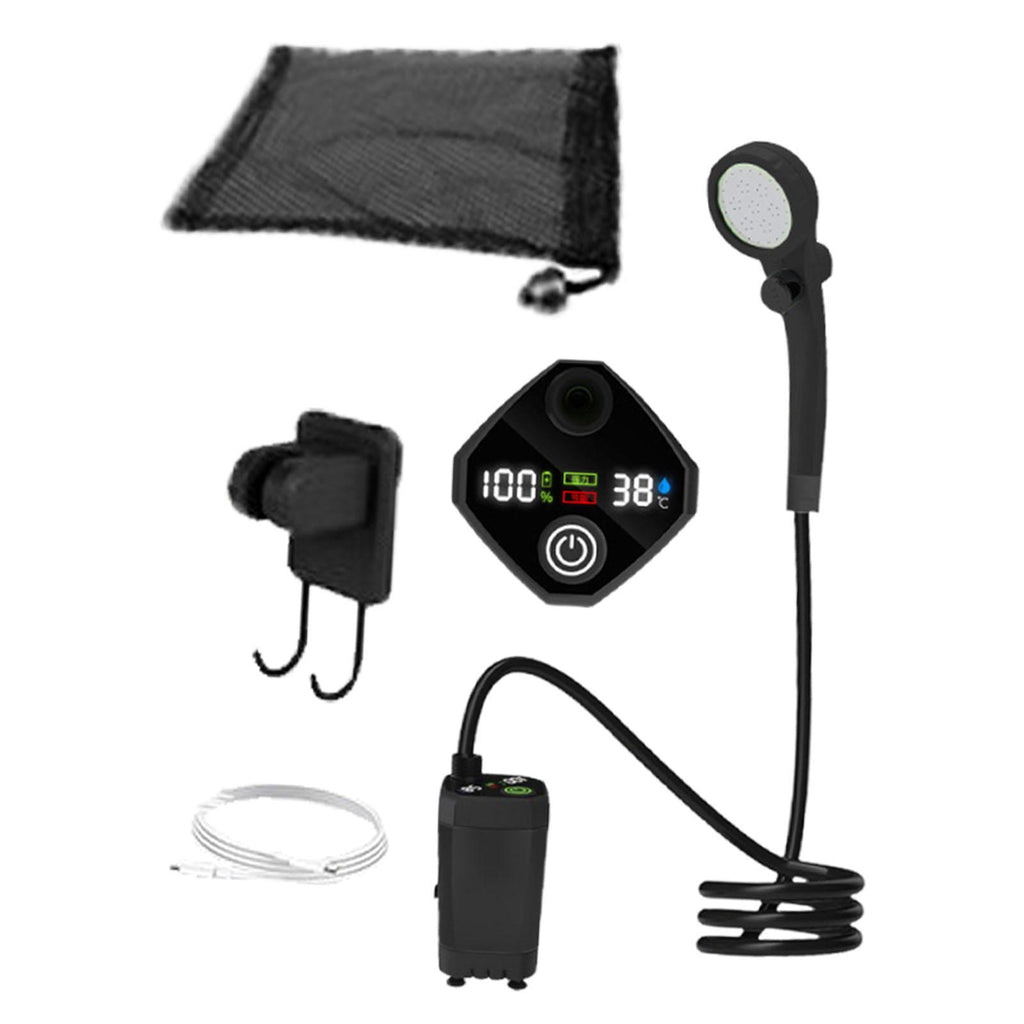 Maxbell Portable Shower Digital Display Multipurpose for Hiking Bathing Pet Cleaning Black