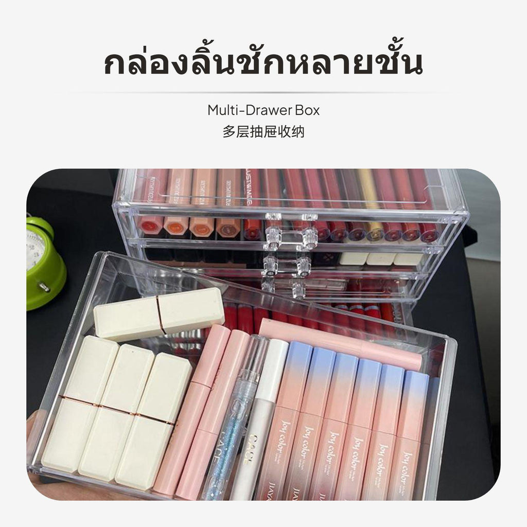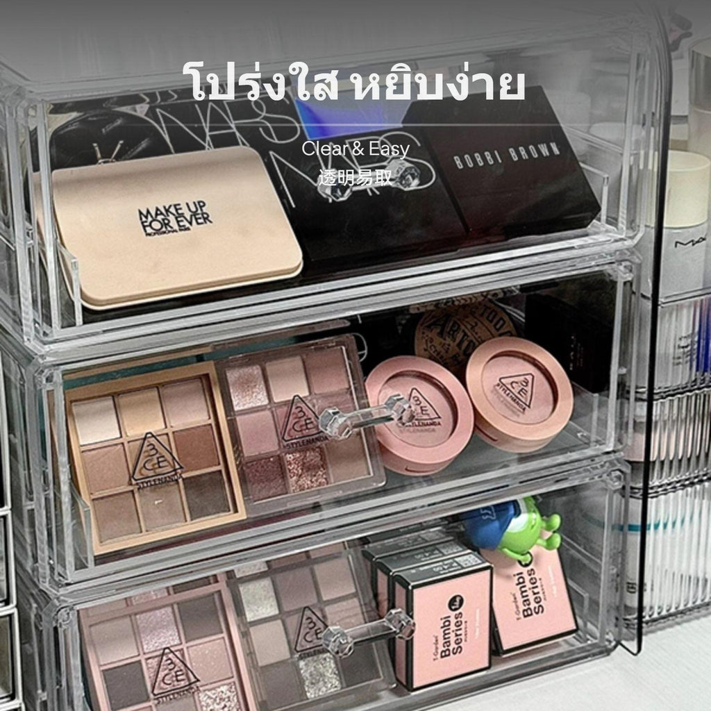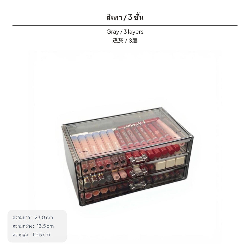 PS Transparent Makeup Organizer Box, Drawerdesign Desktop Storage, Multi-Functional Cosmetic Holder for Vanity, Office & Bathroom Gray 3 Layer