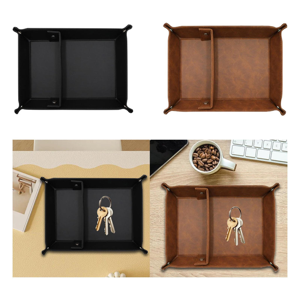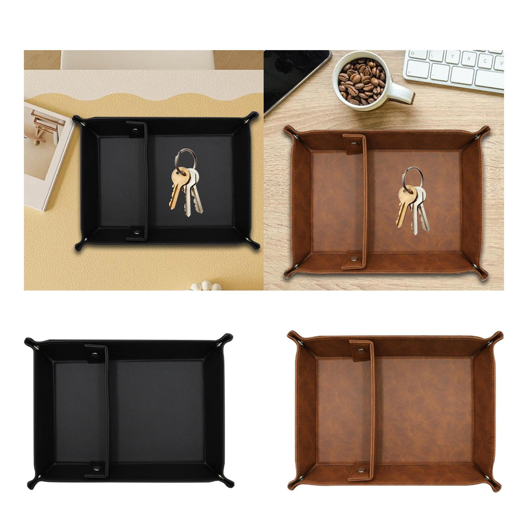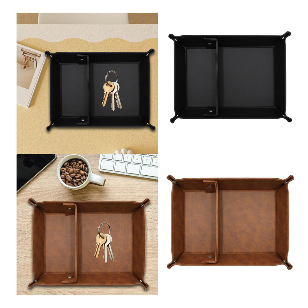 【Premium PU Leather Material】: Desktop Storage Tray is crafted from PU leather with scratchproof properties to protect your belongings while maintaining a sleek look