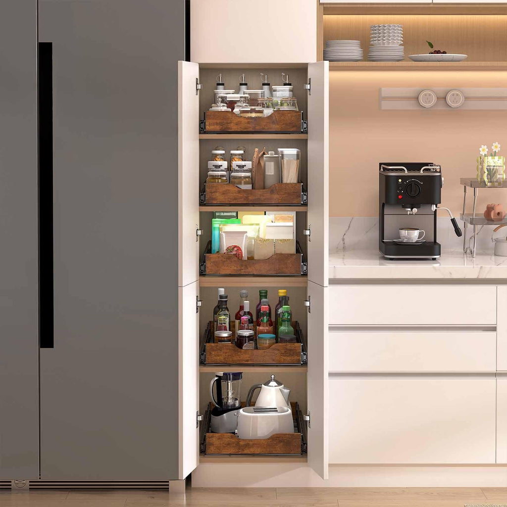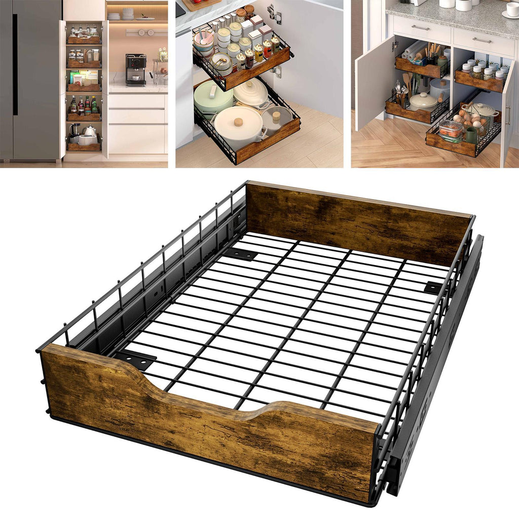 - Smooth Pull Out Design: Effortlessly slide out the basket for easy access to spices, bottles, or kitchen essentials, maximizing cabinet space