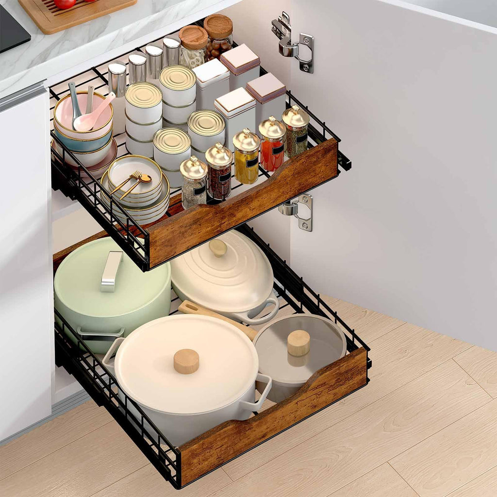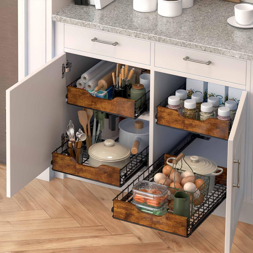 - Versatile Storage Solution: Ideal for organizing dishware, kitchen pots pans, condiments, jars, or cleaning supplies under sinks, in cabinets, or drawers