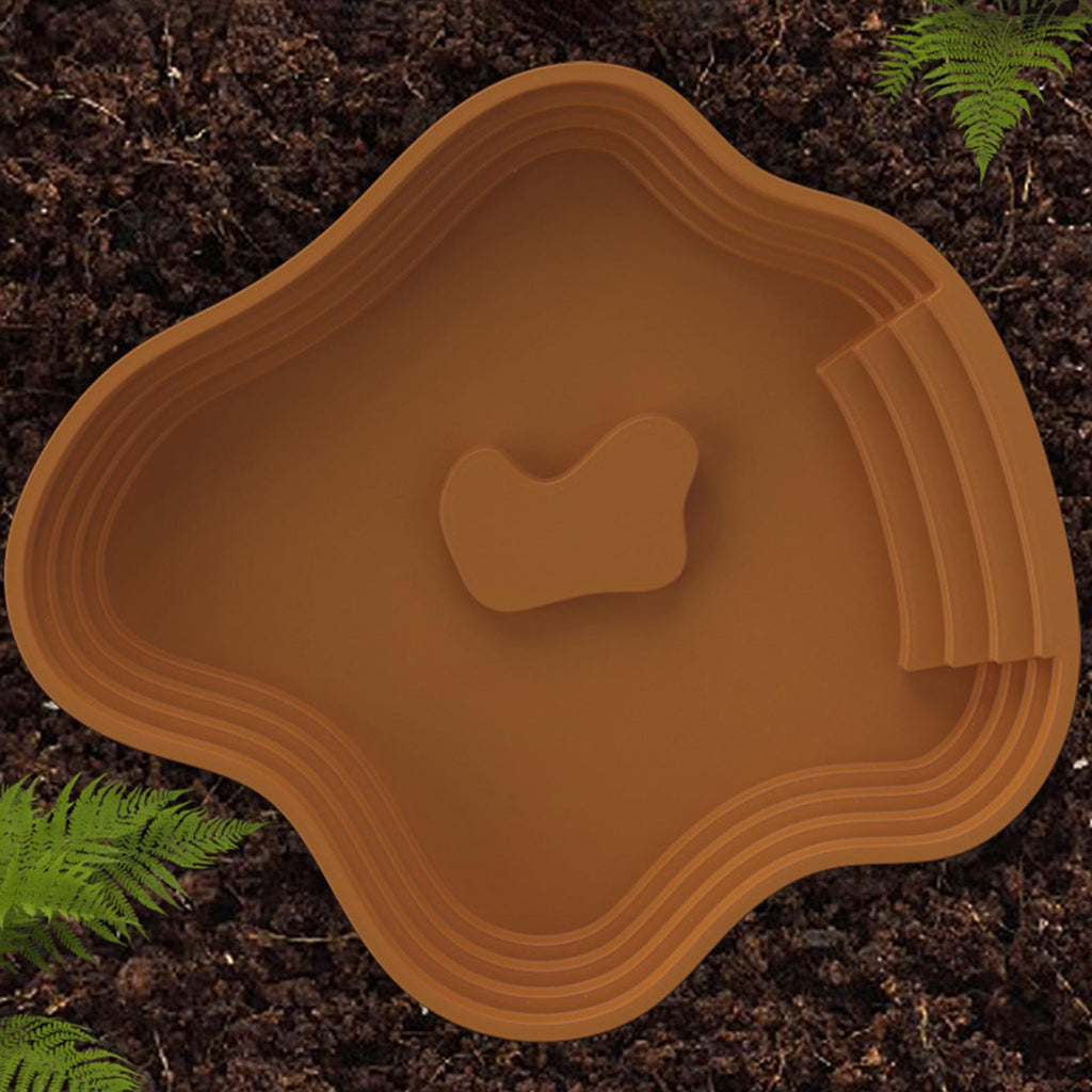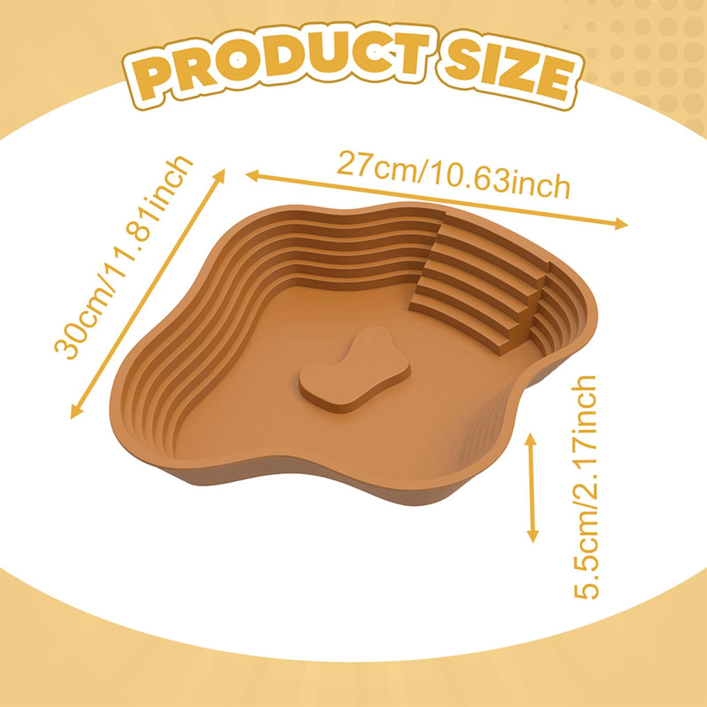 Maxbell Reptile Food Water Bowl with Ramp Turtle Bathing Pool for Turtle Snake Gecko Light Brown