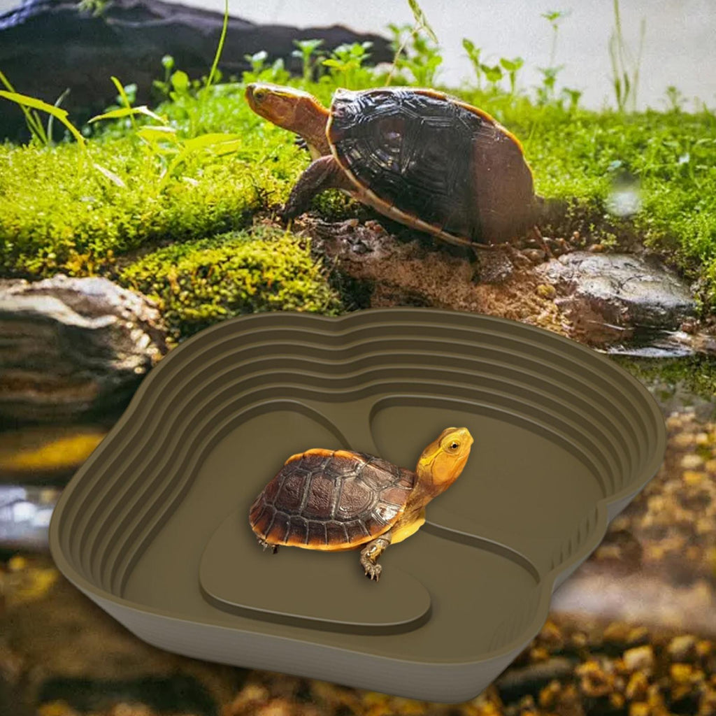 Maxbell Reptile Water Dish Tortoise Water Bath Bowl for Terrapin Tortoises Terrapins coffee