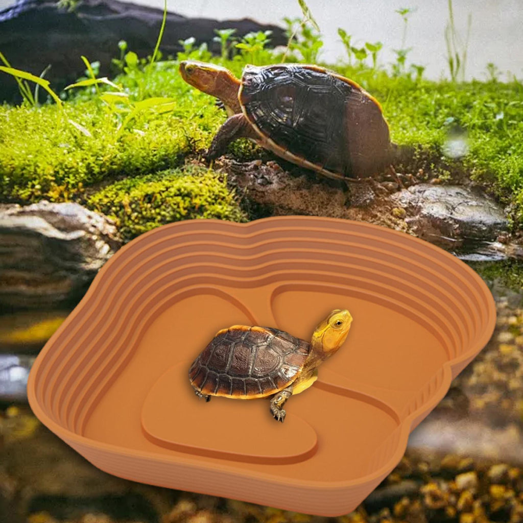 Maxbell Reptile Water Dish Tortoise Water Bath Bowl for Terrapin Tortoises Terrapins Light Brown
