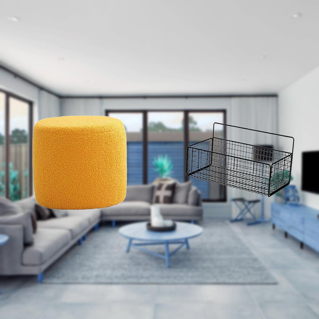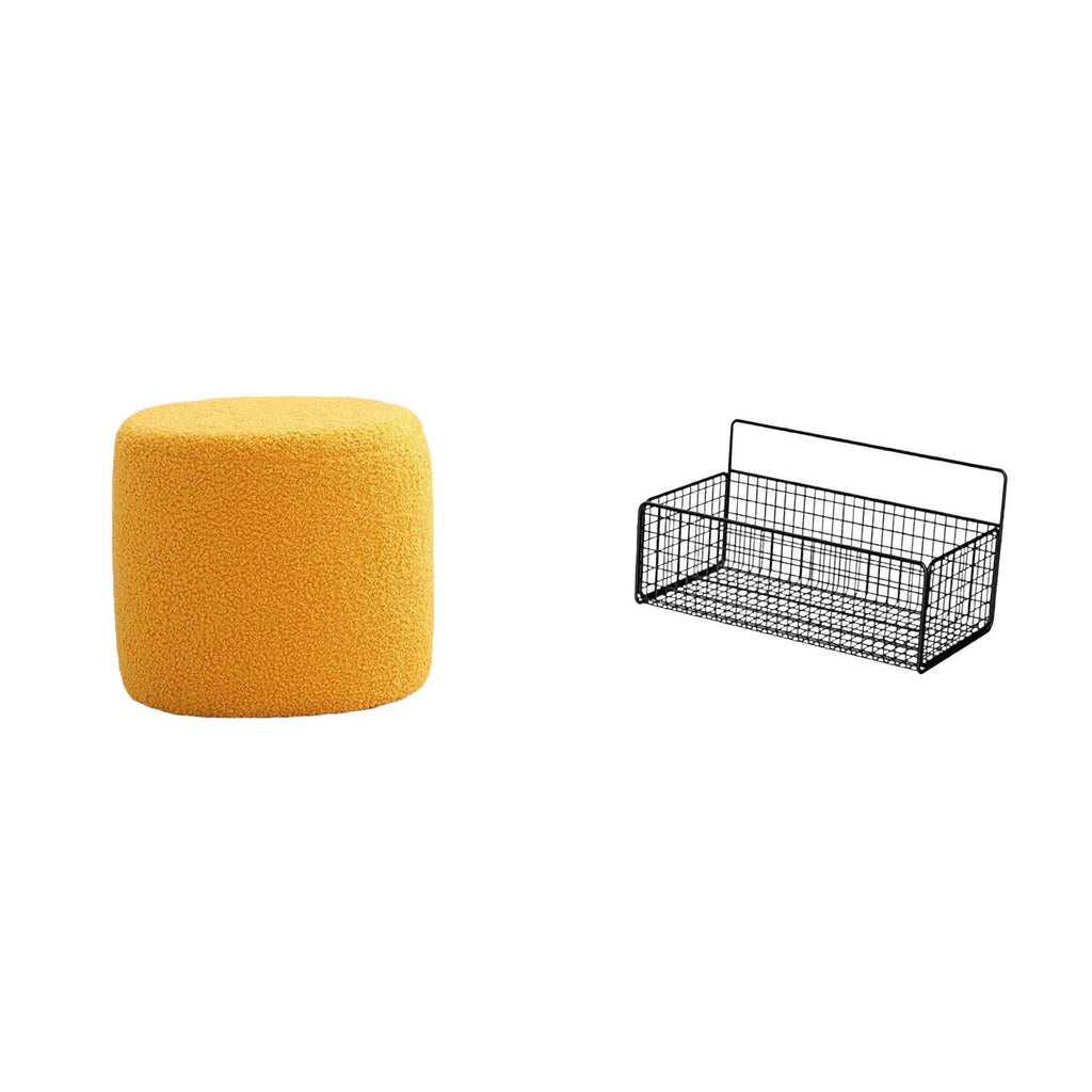 Round Ottoman Footstool Bench Seat Metal Wire Storage Basket Wall Organizer for Bedroom Nursery Apartment Living Room Kitchen Bathroom