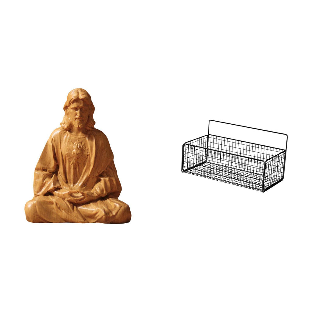 Sacred Heart of Jesus Statue Gift Collectible Metal Bathroom Wall Organizer Wire Storage Basket for Hallway Bedroom Office Desk Fireplace