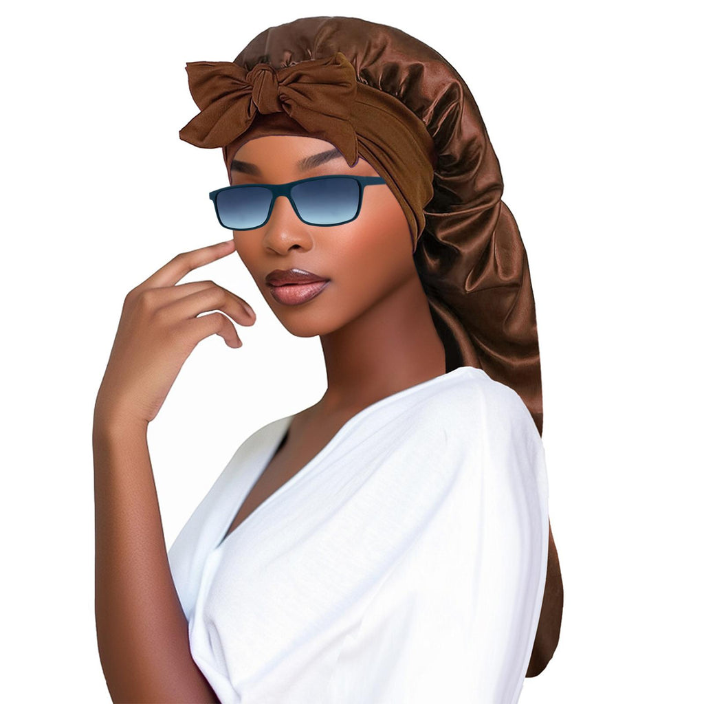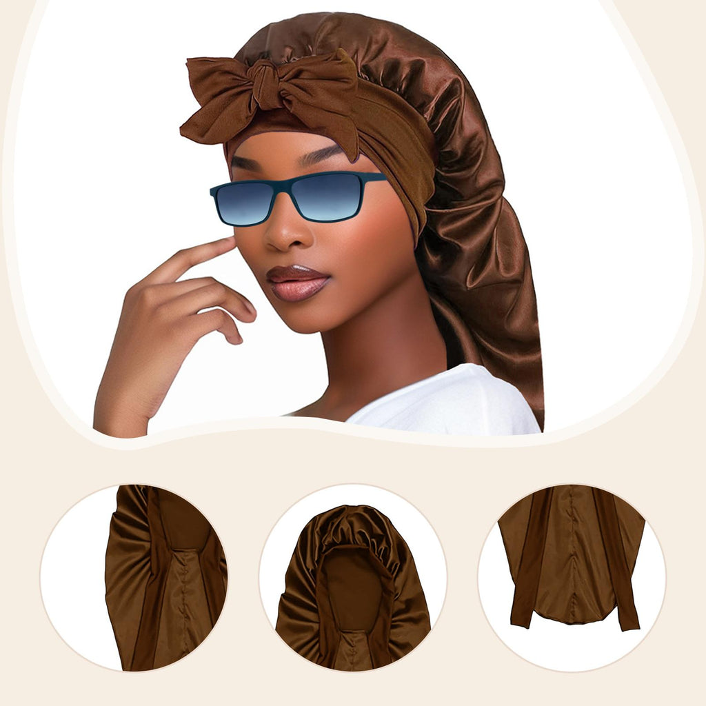 Maxbell Satin Bonnet Elastic Bath Hat Women Hair Bonnet for Makeup Bath Washing Face Brown
