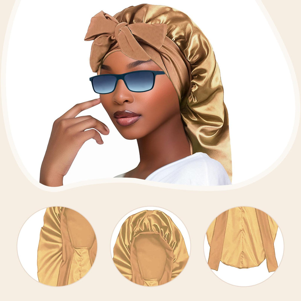 【Satin Bonnet】: The satin bonnet can effectively reduce the friction between the hair and the pillow, and avoid frizz, tangles, and dryness, to effectively care for the hair