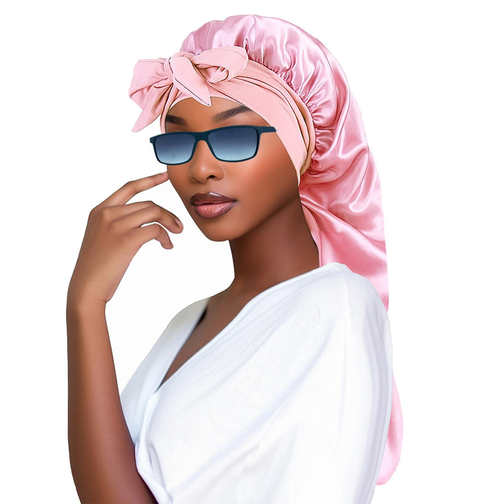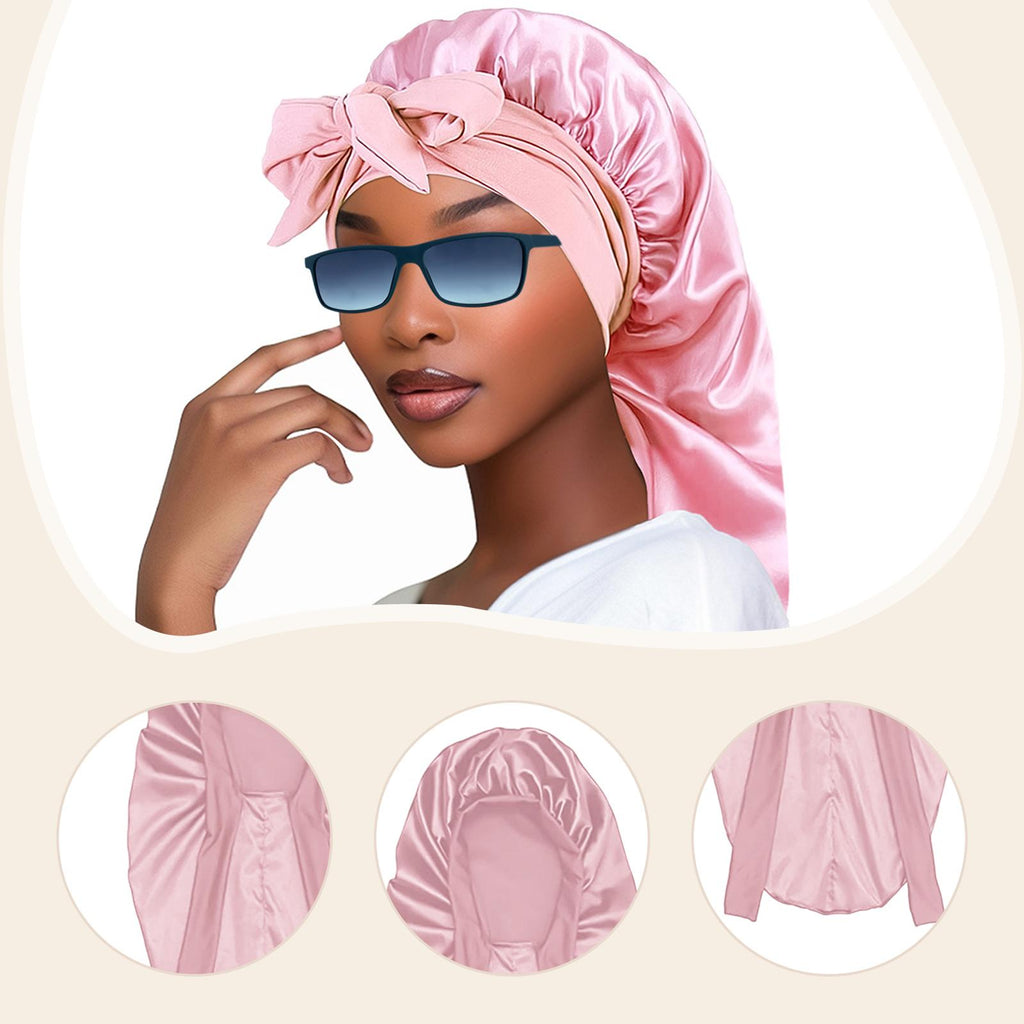 【Satin Bonnet】: The satin bonnet can effectively reduce the friction between the hair and the pillow, and avoid frizz, tangles, and dryness, to effectively care for the hair