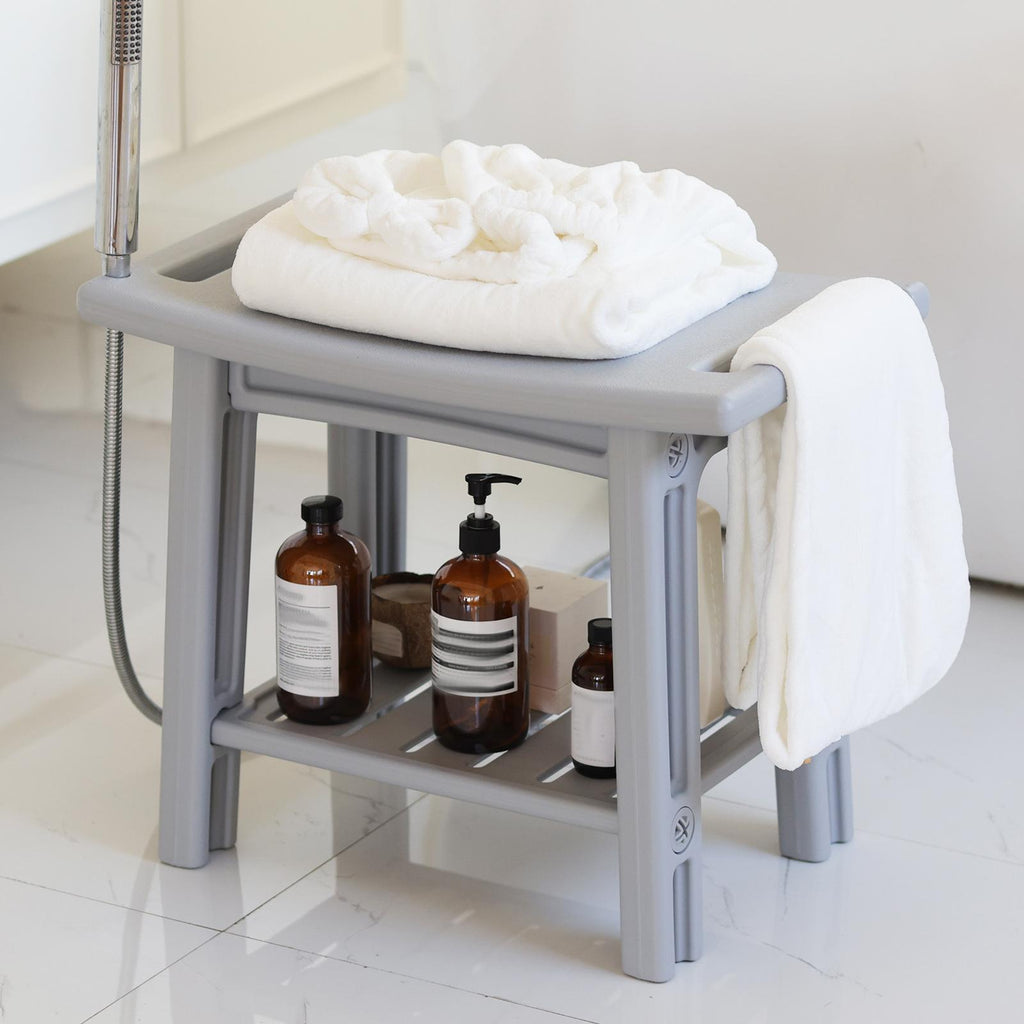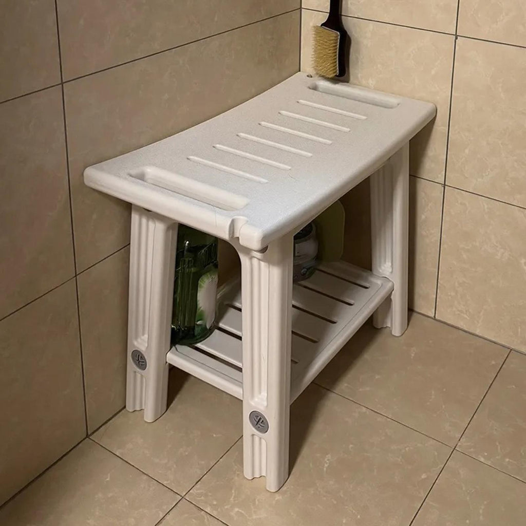 - 【Multifunctional】: The Shower Chair Seat serves multiple purposes. It can be used as a shower seat, bathroom storage rack, shoe changing stool, or Step footrest. Its 2 tier design helps save space.