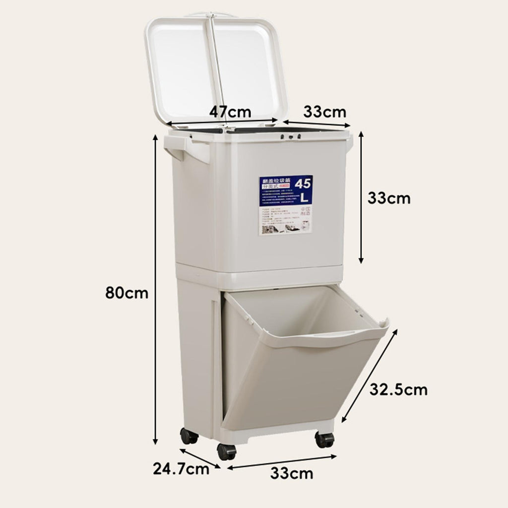 Sorting Trash Can Convenient Kitchen Garbage Can for Bathroom Indoor Bedroom 45L
