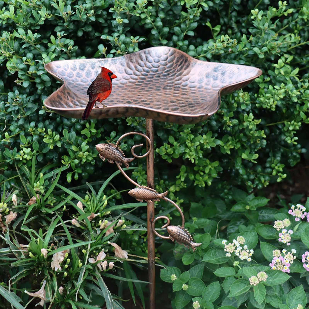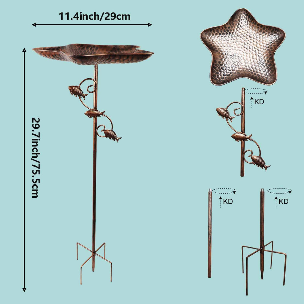 Maxbell Star Bird Bath Bowl Lawn Fence with Garden Stake Yard Porch Bird Feeder Tray