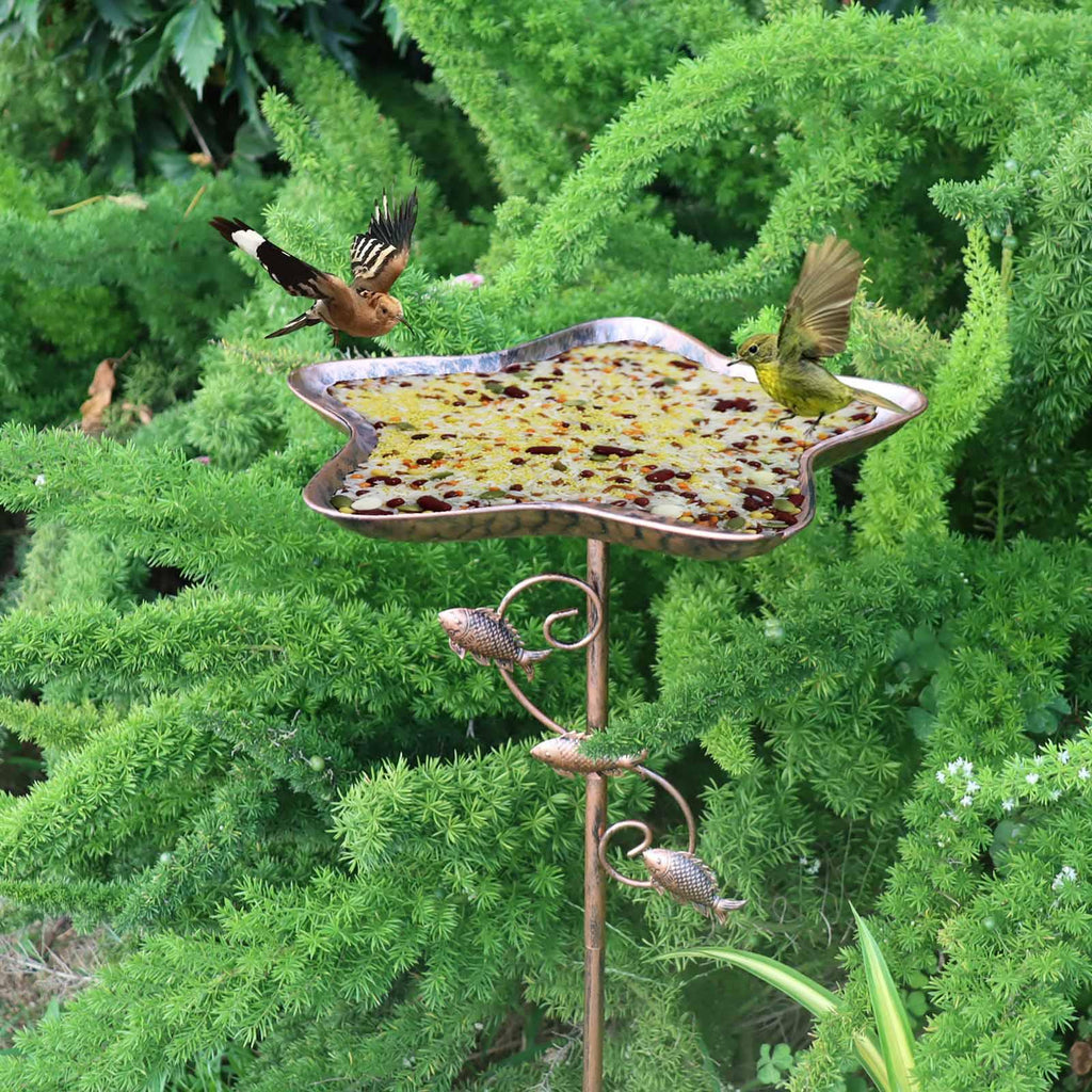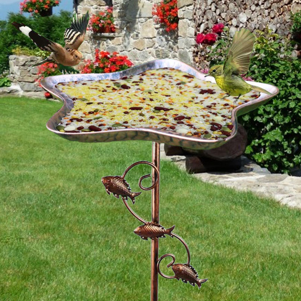 - 【Material】: Crafted from sturdy iron, this garden bird feeder bowl is designed to withstand harsh weather conditions and provide long time use. It offers a reliable food source for your feathered friends, ensuring peace of mind