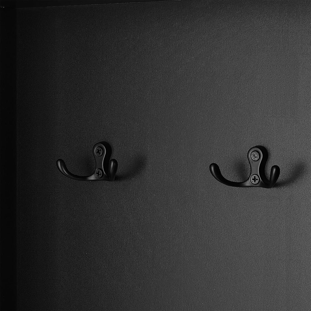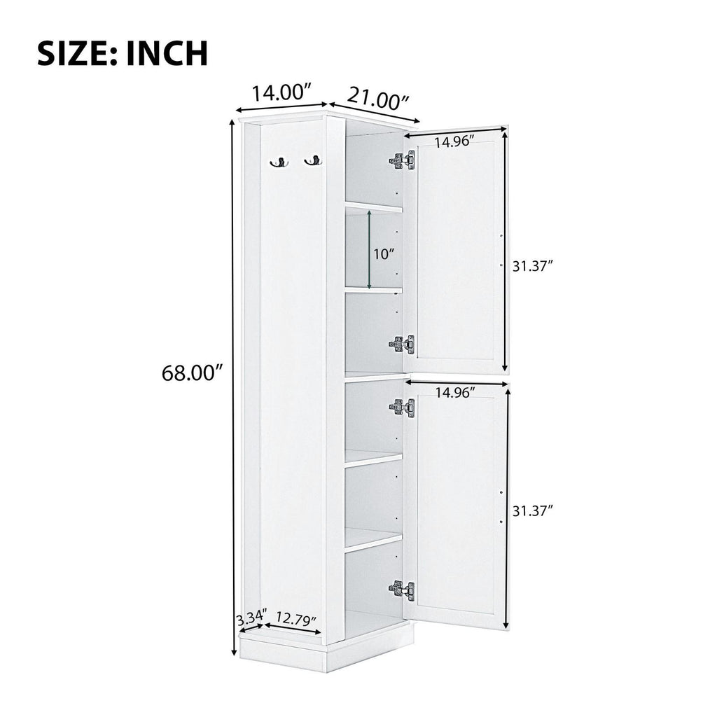 - Material: The cabinet is made of high-quality MDF boards . Thus, the surface is water-, smooth and easy to clean. It is convenient to open or close the doors with silver metal handles.- Adjustable Shelve & Hook: There are two adjustable shelves above and below the storage cabinet, and the black metal hook on the side is very convenient for hanging mops or towels. On the other hand, the left and right sides of the cabinet can be swapped as you like.