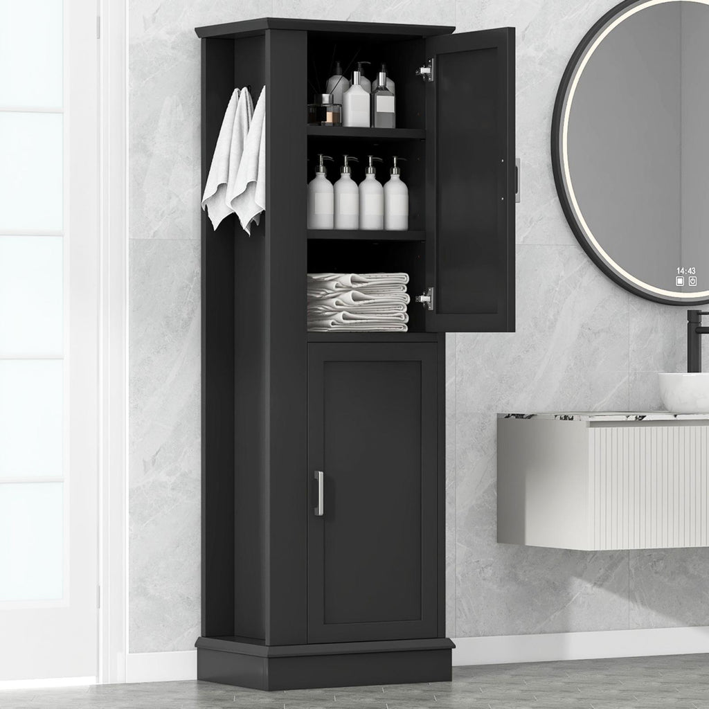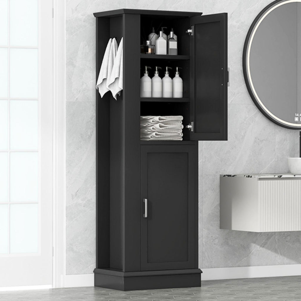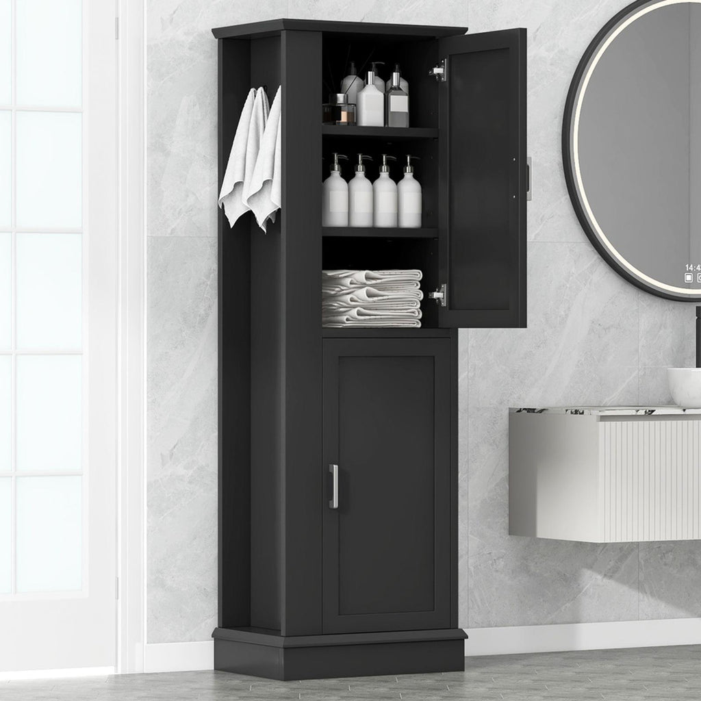 Tall Bathroom Storage Cabinet, Freestanding Storage Cabinet with Hook and