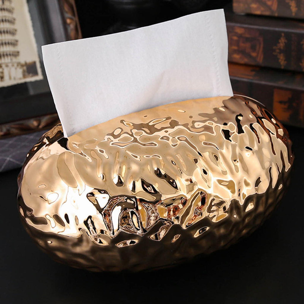Maxbell Tissue Box Holder Egg Shaped Novelty Sturdy Stylish for Hotel Bathroom Decor Gold