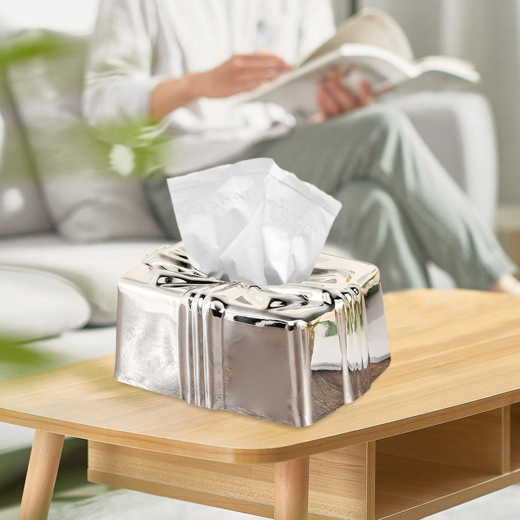 Tissue Box Holder Simple Tissue Box Dispenser for Table Bathroom Night Stand Silver