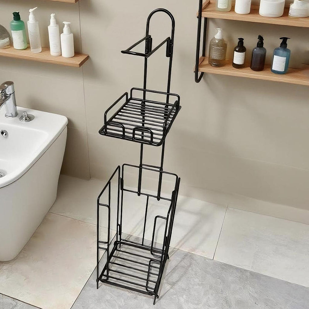 Material: Made from sturdy iron material, this toilet tissue holder shelf measures 16cmx15cmx55.5cm and comes as a standalone unit for easy setup in any bathroom space