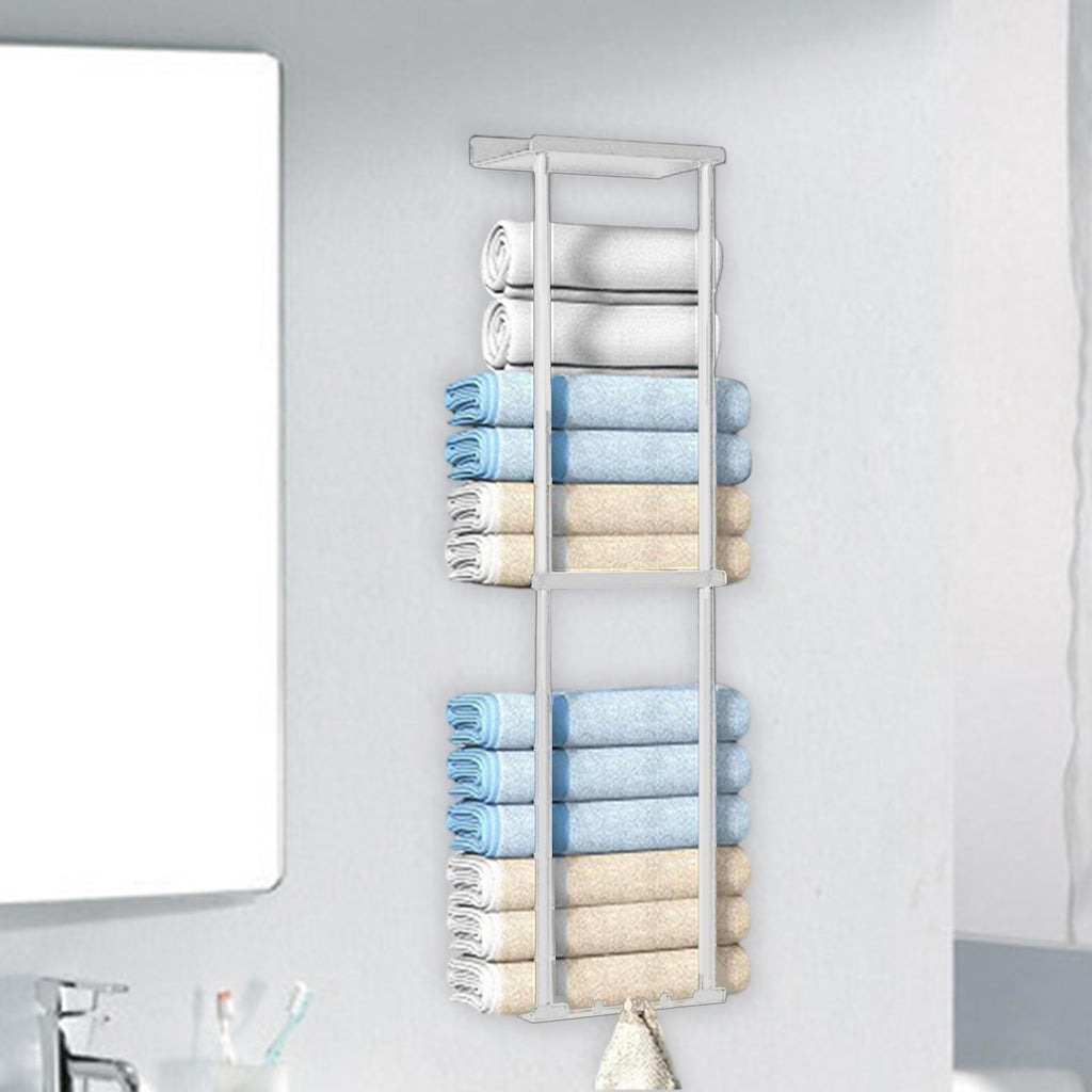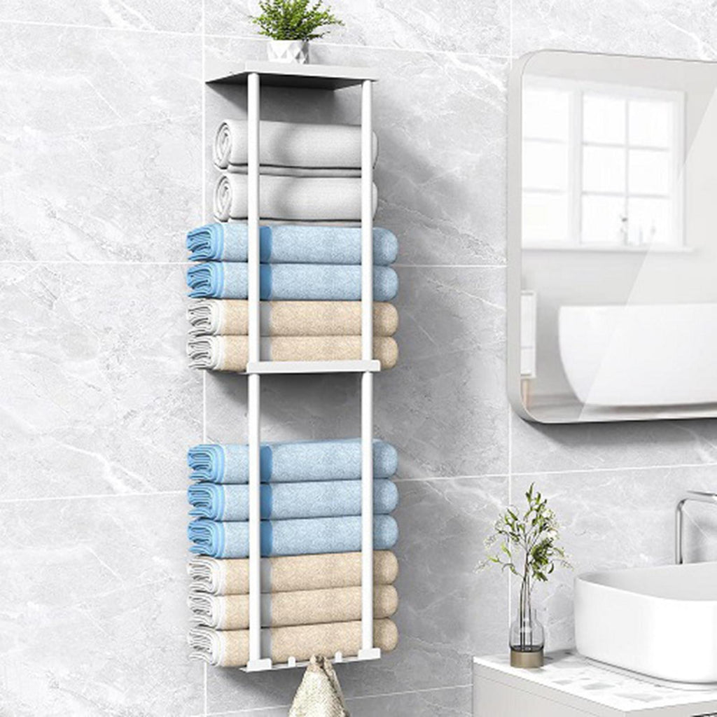 【Efficient Space Utilization】: Maximize your storage options with this compact towel holder, great for organizing bath towels, hand towels, and even rolled towels without taking up floor space