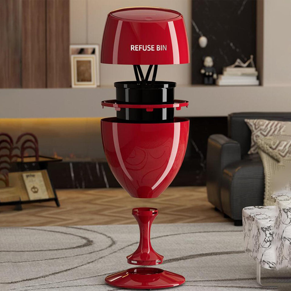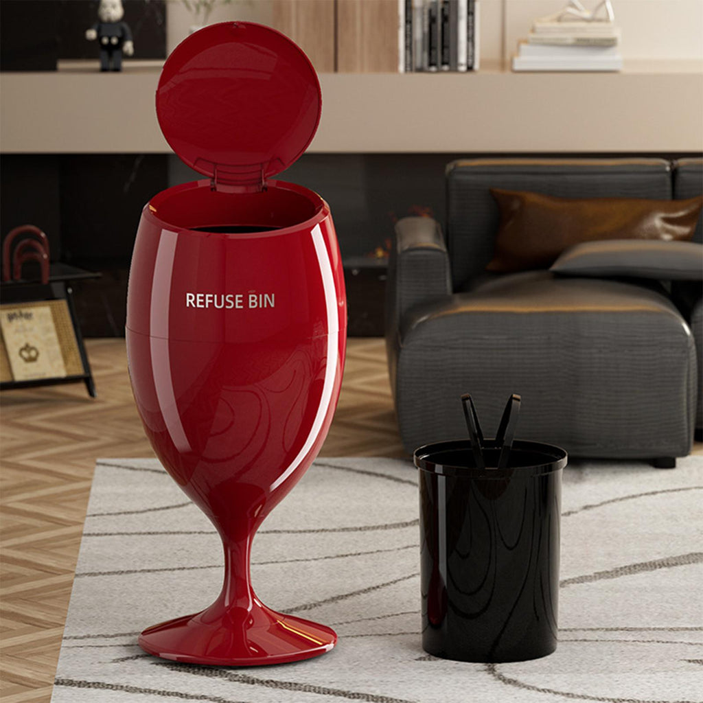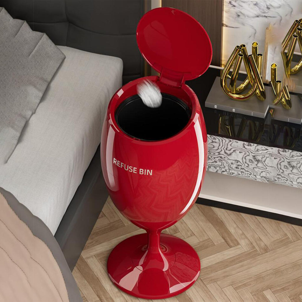- 【Elegant Design】: Inspired by a goblet, this modern trash can adds a touch of luxury and artistic flair to your home, instantly elevating your living space