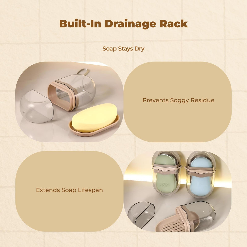 【Portable Travel Soap Holder for common Use】Combining portability, water waterproof, and a small design, this soap holder is perfect for travel, gym, camping, and outdoor activities, keeping your soap dry and protected.【Efficient Drainage Design】Featuring a sealed drainage tray, this holder quickly removes water to maintain cleanliness and prevent leaks.【Transparent High-Quality Material】Made from clear material, the box offers an elegant appearance and makes it easy to soap levels.【Secure Storage with Lid】the dripresistant lid and sealed construction protect your soap from moisture, making it perfect for use in bathrooms, dorms, and during travel.【Easy to Clean and Carry】Its small size and simple-to-clean design make it suitable for students, business trips, and commonplace use at home.Specification: