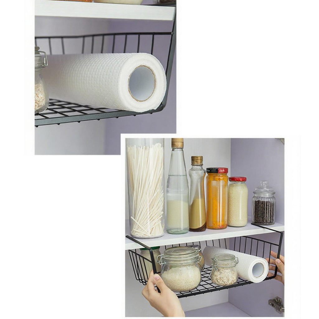 - 【Space Saving】: Under Cabinet Shelf Basket is an ideal space saving option for your kitchen or dorm room. It easily hangs inside a cabinet or under a shelf, maximizing your storage space