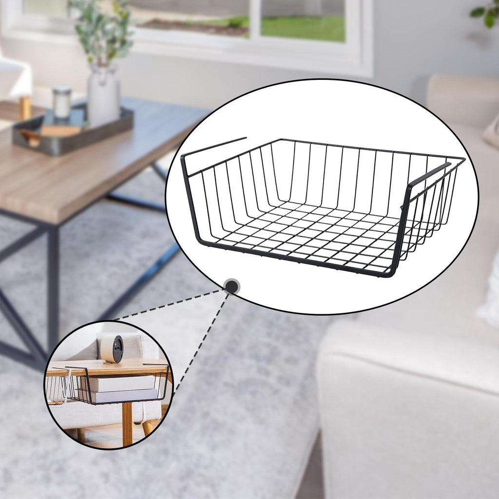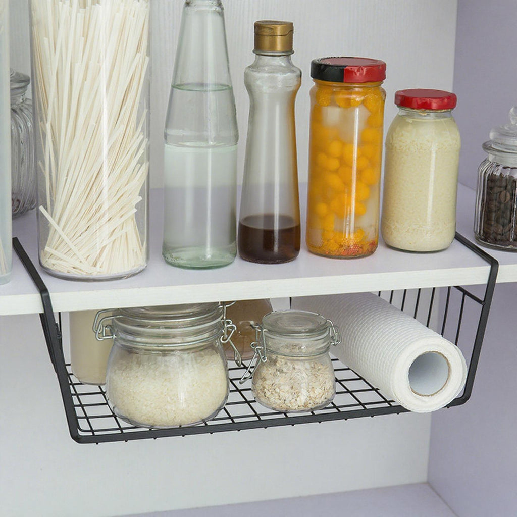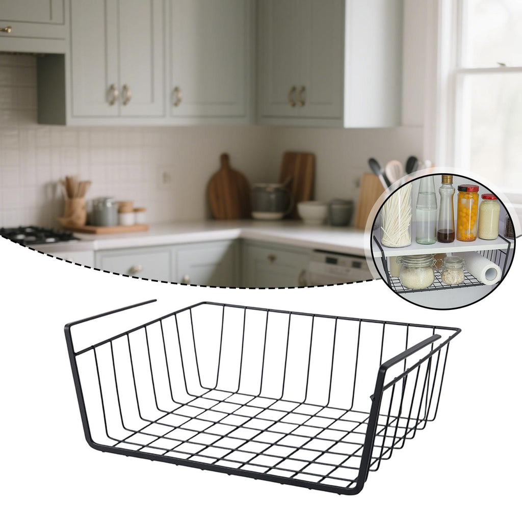 - 【Versatile】: Under Shelf Wire Basket is perfect for storing and organizing a variety of items, such as spice jars, condiment bottles, and kitchen utensils. It provides extra storage space for essentials and maximizes your cabinet space
